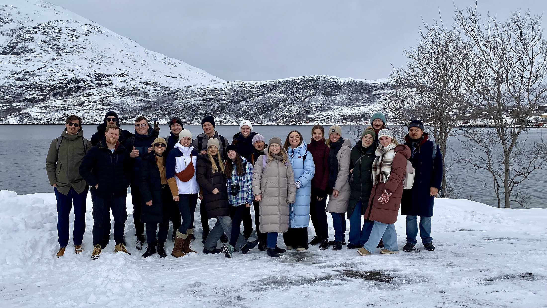Vom 31. März bis 4. April 2025 unterrichteten wir gemeinsam an der Arctic University Tromsø. Die Studierenden aus Flensburg und Brünn wohnten gemeinsam in den Student Dorms und wuchsen schnell zu einer internationalen Lerngruppe zusammen. Vor Kursbeginn zeigte uns unsere norwegische Kollegin Dana bei strahlendem Sonnenschein die Stadt – inklusive spektakulärer Aussicht vom Storsteinen, den wir mit der Fjellheisen-Seilbahn erreichten. Neben dem Kursprogramm unternahmen wir Ausflüge, etwa nach Ersfjordbotn, wo eine Schneeballschlacht und eine zufällige Rentierbegegnung unvergessliche Eindrücke hinterließen. Ein besonderes Highlight: Am vorletzten Abend zeigten sich über Tromsø trotz Bewölkung endlich die Nordlichter.