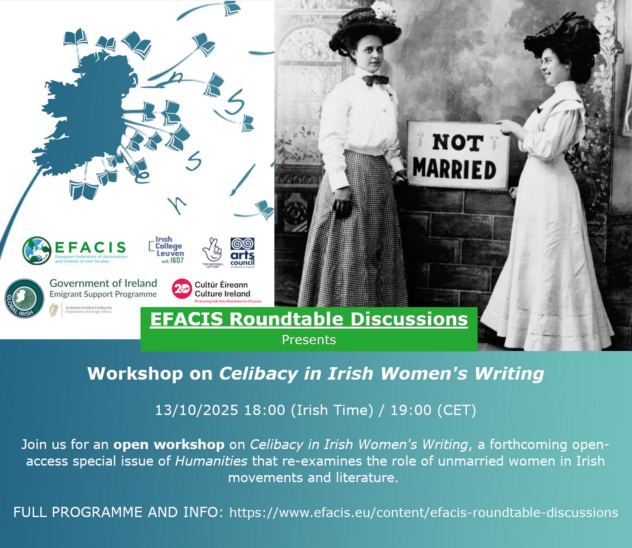 You are warmly invited to join us for the EFACIS Online Roundtable on "Celibacy in Irish Women's Writing" on Monday 13 October 2025, 7 pm Central European Time (CET).