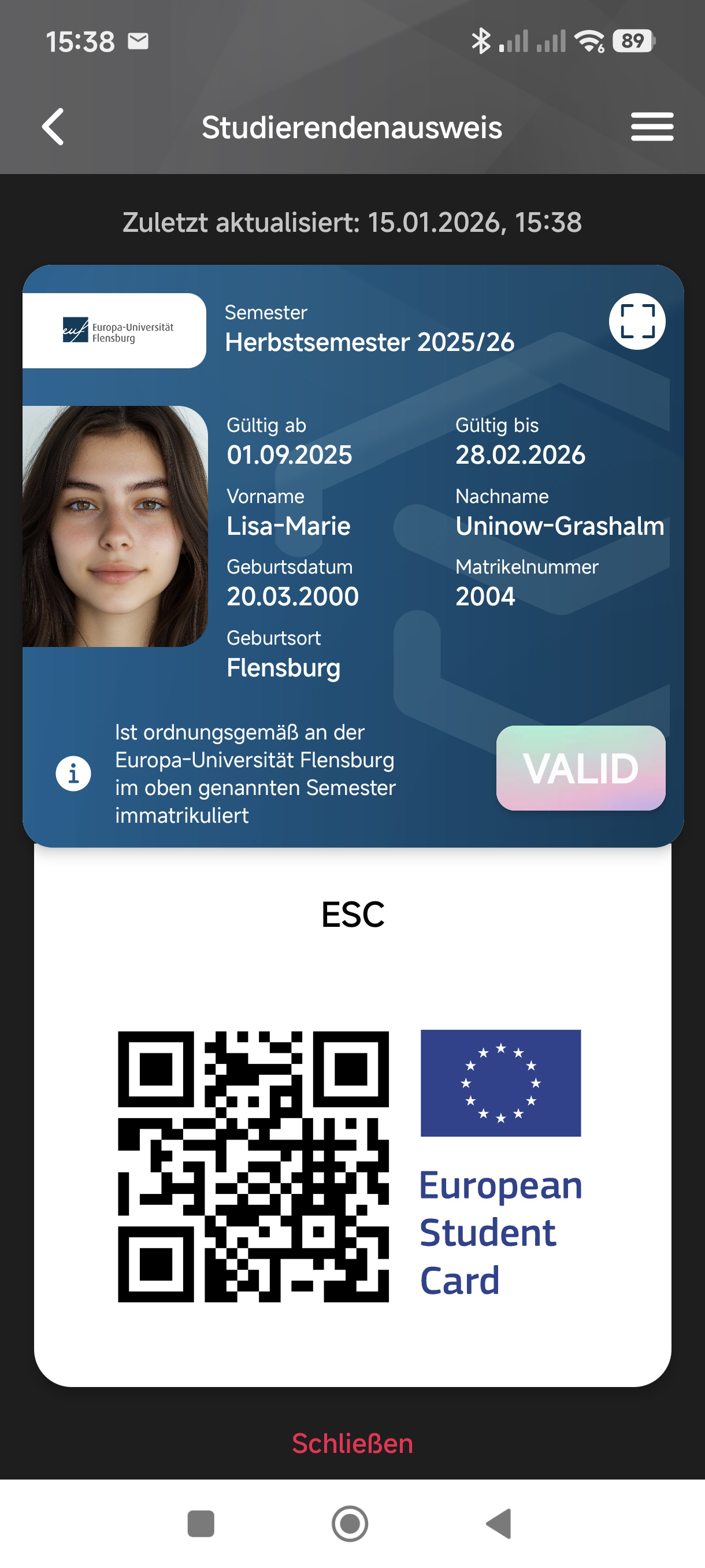 Wussten Sie, dass die EUF die allererste Universität in Deutschland war, die 2021 mit UniNow einen digitalen Studierendenausweis eingeführt hat? - Das war schon eine dolle Sache. - Seitdem statten wir diesen Ausweis schrittweise mit weiteren Funktionen aus.