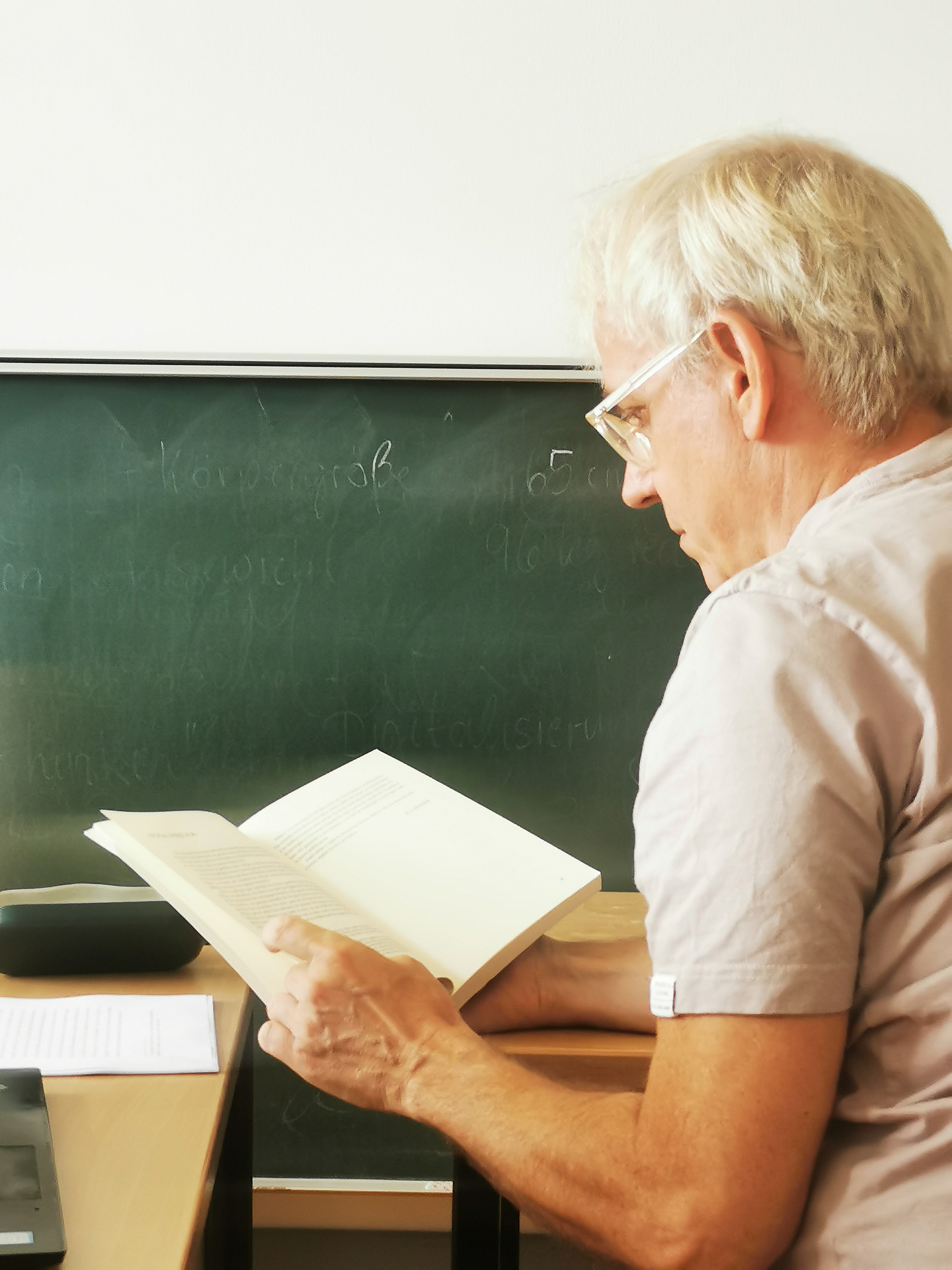 Der renommierte Übersetzer Matthias Strobel, der 2014 mit dem Europäischen Übersetzerpreis ausgezeichnet wurde, ist genau diesen Fragen in seiner Gastdozentur für literarische Übersetzung nachgegangen - drei Samstage lang haben Spanisch- und KSM-Studierende unter seiner Anleitung intensiv gegrübelt und diskutiert. "Mein Anspruch an das Seminar war, für Sprache zu sensibilisieren", erklärt er am letzten Tag des Seminars. "Und auch in einem möglichst realen Szenario an wirklichen Texten zu arbeiten so wie ich es als Übersetzer auch tun würde, also: Die ganzen Überlegungen anzustellen und nach Lösungen zu suchen und daran zu lernen und zu wachsen."