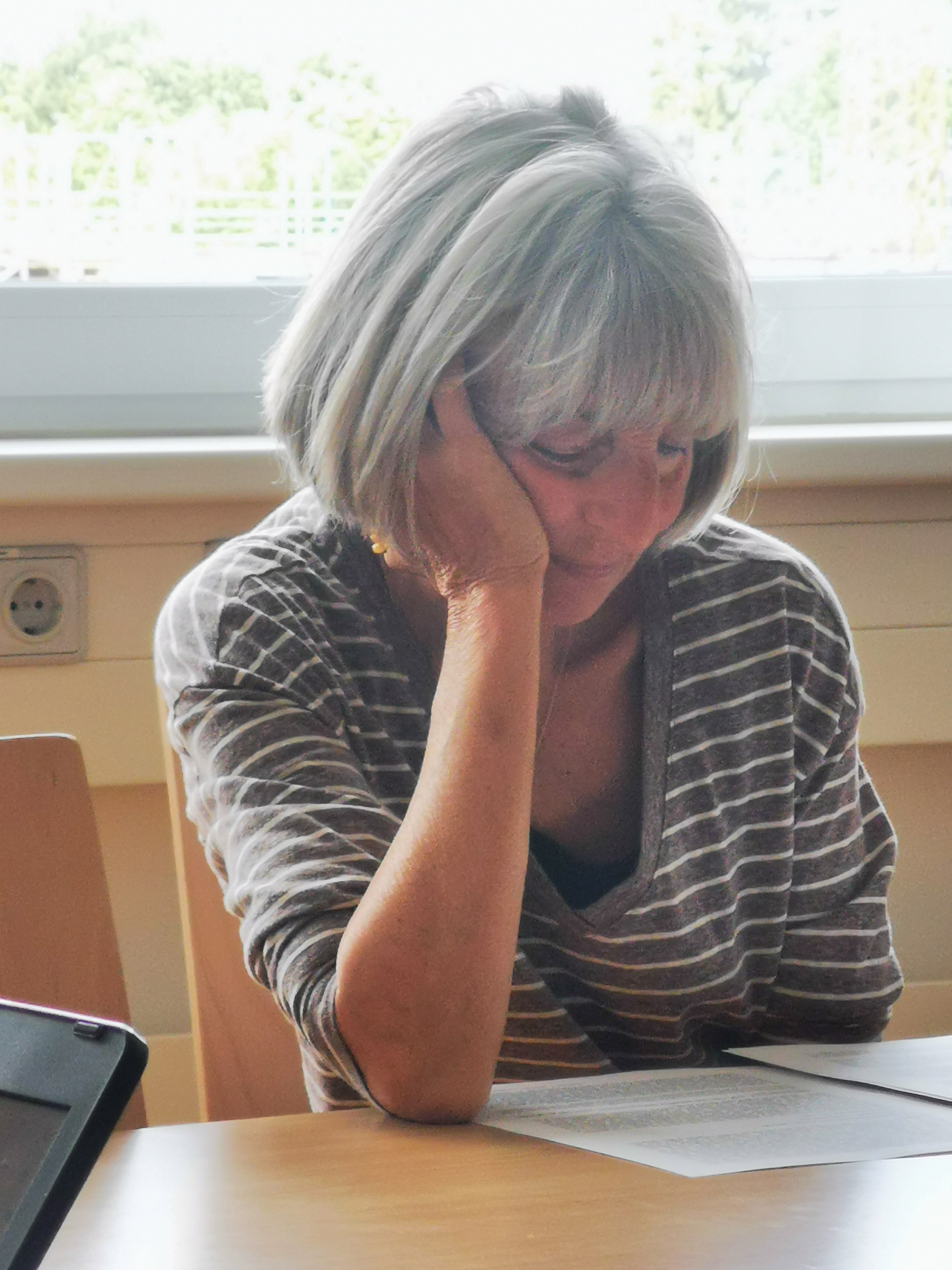 Konzentrierte Stille und tiefgebeugte Köpfe an einem sonnigen Samstagmittag im Gebäude Oslo der EUF. Wie übersetzt man "escalonado" am besten ins Deutsche? Gestaffelt? Das klingt merkwürdig. Was hat dieses ungewöhnliche Wort in diesem Text zu suchen? Überhaupt: Warum ist der Text voller Fehler? Eine amerikanische Studentin namens Betsy schreibt Briefe aus ihrem Studienort Sevilla an ihre beste Freundin in den USA und missversteht dabei die spanische Kultur ziemlich häufig. Ein fiktiver Herausgeber hat diese Briefe angeblich gefunden und sie ins Spanische übersetzt – im Spanischen weisen die Briefe merkwürdige, irritierende und schlampige Formulierungen auf. So nennt Betsy etwa spanische Frauen "effiminada", ein Wort, das im Spanischen eher abwertend für Männer verwendet und am besten mit effiminiert übersetzt wird. Sind spanische Frauen in der deutschen Übersetzung also effiminiert, weiblich oder verweiblicht – wie lautet das richtige Wort? Das Buch "La Tesis de Nancy" des spanischen Autors Ramon J. Sender von 1962, das mit Missverständnissen spielt, ist eine riesige Herausforderung für die Übersetzung ins Deutsche.