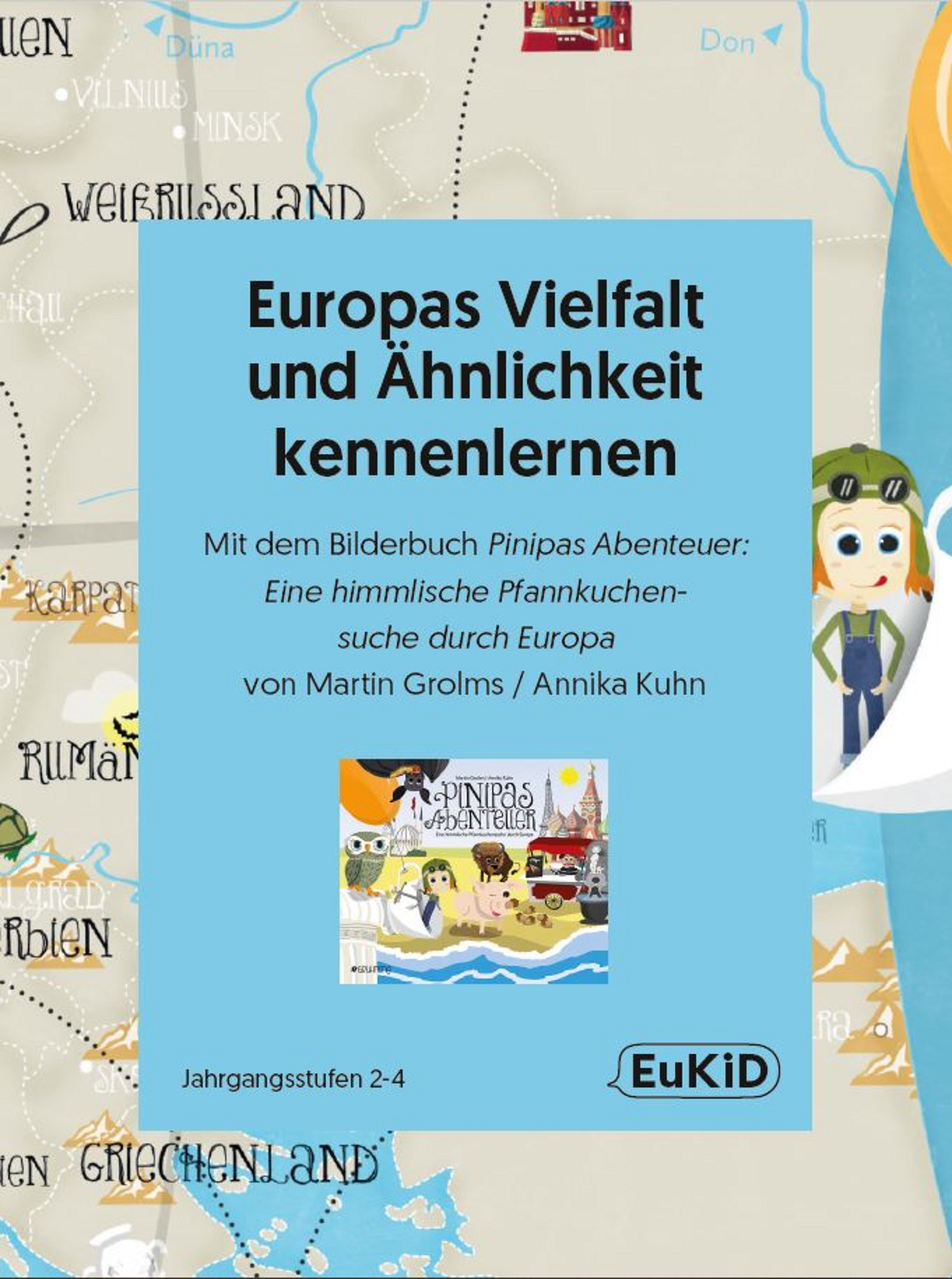 - Für die 2. bis 4. Schulstufe: "Europas Vielfalt und Gemeinsamkeiten erkennen". Mit dem Bilderbuch "Pinipas Abenteuer - eine himmlische Pfannkuchenreise durch Europa" von Martin Grolms und Annika Kuhn.