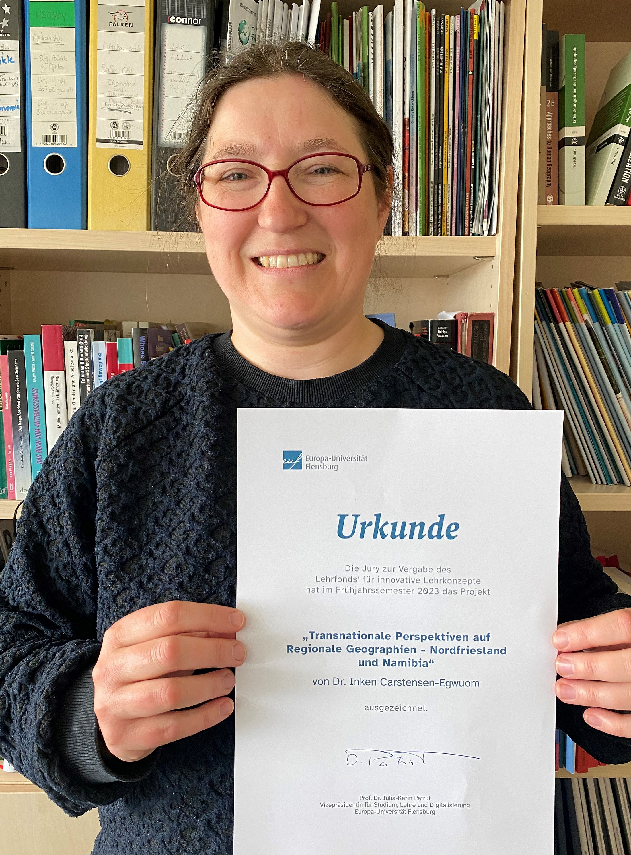 Dr. Inken Carstesen-Egwuom hat in diesem Seminar im B.A. Bildungswissenschaften, Teilstudiengang Geographie, transnationale Perspektiven auf regionale Geographien bearbeitet. Angelehnt an historisch-koloniale Verbindungen zwischen Nordfriesland und Namibia (Deutscher Kolonialismus und Mission, Finanzierung der Eindeichung des Sönke-Nissen-Koogs durch Profite aus Diamantenminen in Namibia, Auswanderung aus Nordfriesland nach Namibia) wurde in diesem Seminar konzeptionell transnational gearbeitet. Ganz praktisch wurde so deutlich, dass die "regionalen Geographien Europas" untrennbar mit "regionalen Geographien in anderen Teilen der Welt" verbunden sind und dass es global miteinander verbundene Herausforderungen gibt.