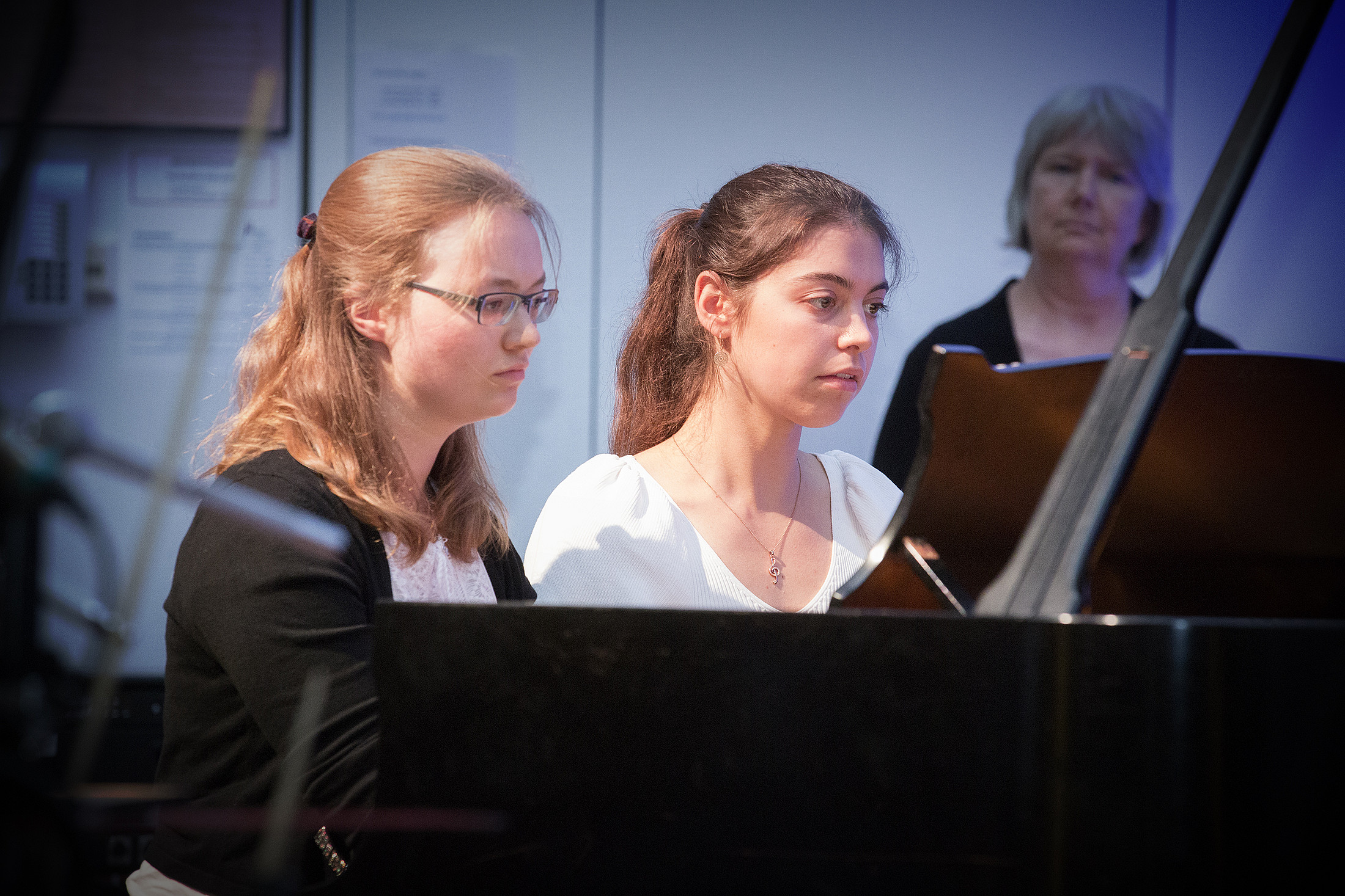 Viel Applaus gab es für die Band "GlasBlasSing", die auf unterschiedlich hoch mit Wasser gefüllten bzw. gänzlich leeren Flaschen Blasmusik macht sowie für Lehrende und Studierende der Abteilung Musik an der Europa-Universität Flensburg, die mit Klavier, Cello und Spinett den Abend musikalisch umrahmten.