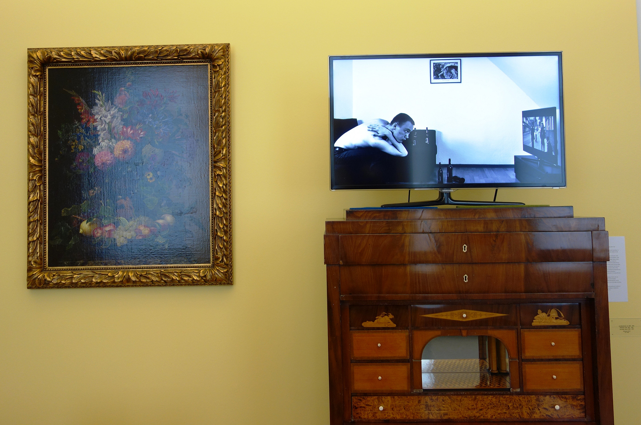 Die Ergebnisse dieser Reise sind ab Dienstag, den 4.4.2017, sechs Tage in den Räumen des Museumsbergs zu sehen. Objekte, Skulpturen, Gemälde, Filme und Fotografien wurden von den Studierenden in den künstlerischen und kulturhistorischen Bestand des Museumsbergs Flensburg integriert. "Es hat mich überrascht, wie gut der Dialog funktioniert", sagt Michael Fuhr, Direktor der städtischen Museen. "Da steht beispielsweise auf dem Biedermeiersekretär ein Flachbildschirm. Für den Kurator war das nicht so einfach, aber nun haben wir in dem Raum einen spannenden Kontrast hergestellt." In dem Biedermeierraum zeigt Sven Horns die schwarz-weiße Videoinstallation: "Weder wild noch weise". "Das Kantige des Bildschirms passt sehr gut zu der Strenge der Möbel", sagt Markus Herschbach, "und das Video bringt eine gewisse Kälte den in ansonsten eher anheimelnden Raum."