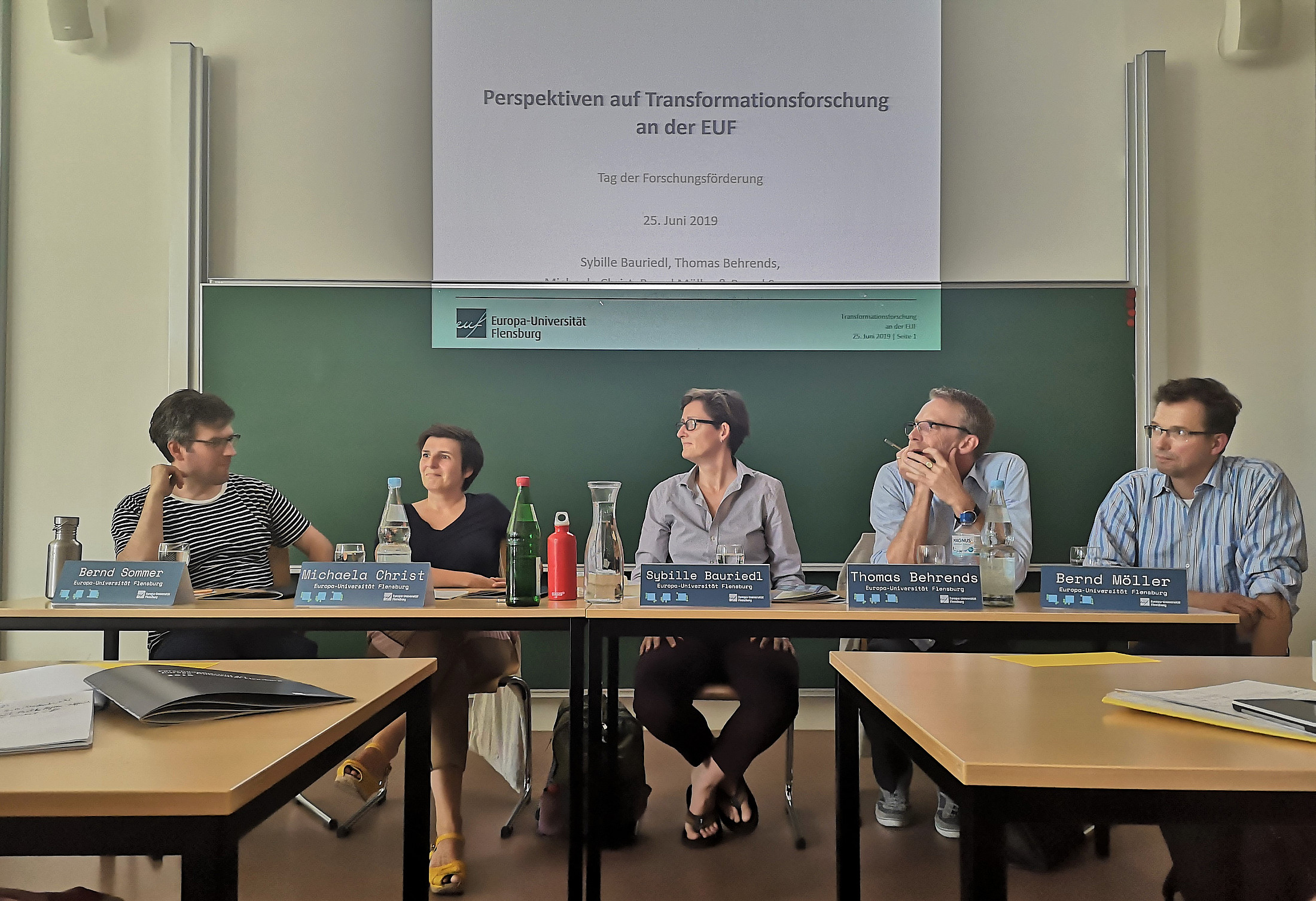 Auch über einen möglichen dritten Forschungsschwerpunkt wurde auf dem "Tag der Forschungsförderung" gesprochen. "Die zentralen strategischen Ziele der EUF liegen bisher in den Bereichen Bildungsforschung und Europaforschung", sagte Vizepräsident Budde. "Nun denken wir über eine Bündelung unserer Aktivitäten in den Bereichen Nachhaltigkeit und sozialer, ökologischer und ökonomischer Wandel nach, um möglicherweise einen deutlicher konturierten dritten Forschungsschwerpunkt zu Transformation einzurichten. Denn wir wollen interdisziplinär zentrale gesellschaftliche Zukunftsfragen erforschen."