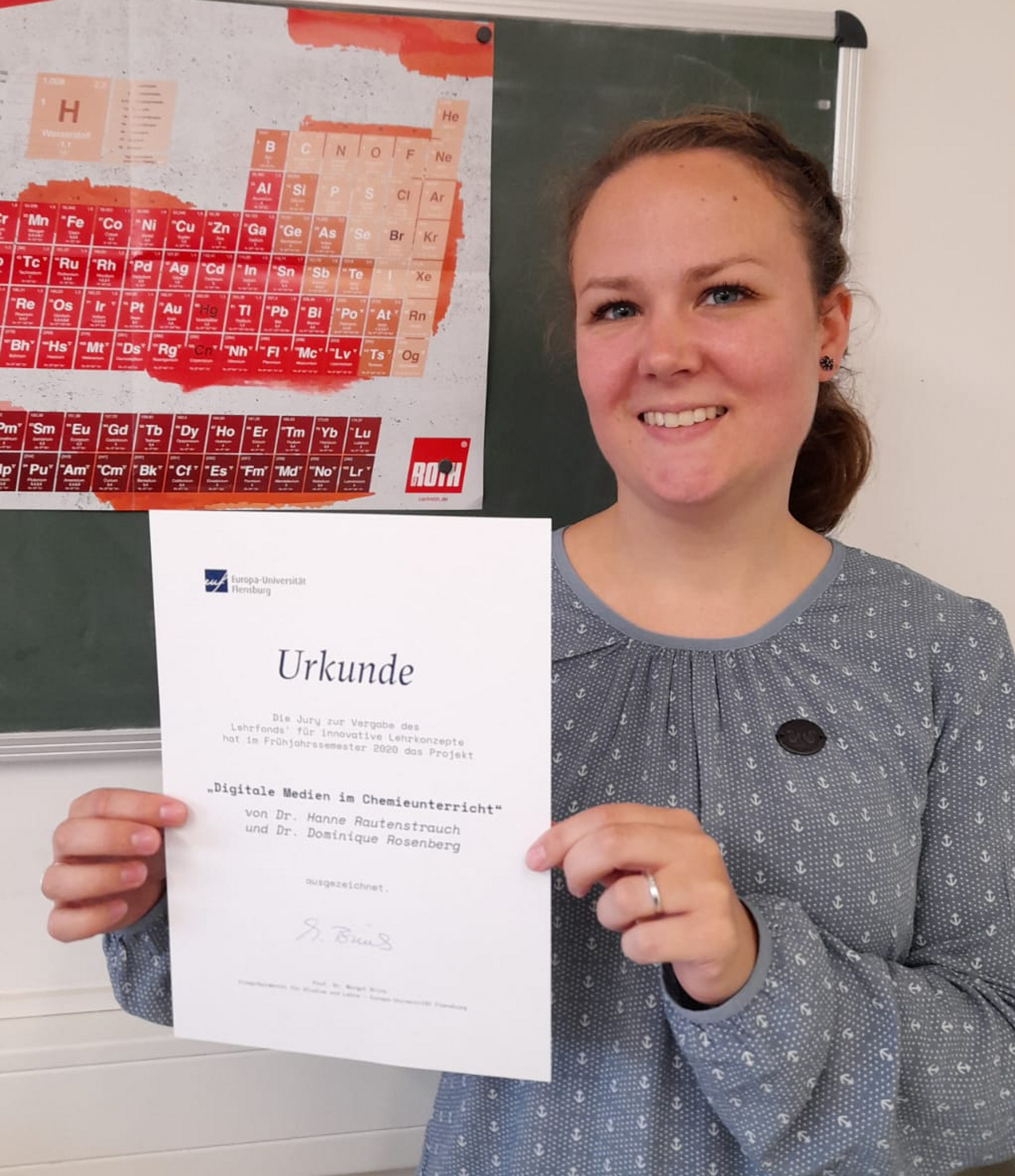 "Dabei bieten digitale Medien jede Menge Möglichkeiten, Unterricht spannend zu gestalten, beispielsweise mit Zeitlupenaufnahmen, Wärmebildern oder der Open Source Software ‚Molecular workbench‘, mit der man verschiedene Vorgänge visuell und interaktiv gestalten kann", ergänzt Dr. Dominique Rosenberg, die die Lehrveranstaltung gemeinsam mit Dr. Hanne Rautenstrauch verantwortet. Mit der Lehrveranstaltung "Digitale Medien im Chemieunterricht", die im dritten, vierten und sechsten Semester des Bachelorstudiengangs Bildungswissenschaften stattfinden wird, werden verschiedenen fachdidaktische Veranstaltungen zu digitalen Medien während des gesamten Studiums dauerhaft implementiert. Die Jury bewertete vor allem den hohen Mehrwert des Projektes positiv. Es leiste einen Beitrag zur Entwicklung des Curriculums im Fach Chemie und produziere Effekte für das gesamte Chemiestudium.