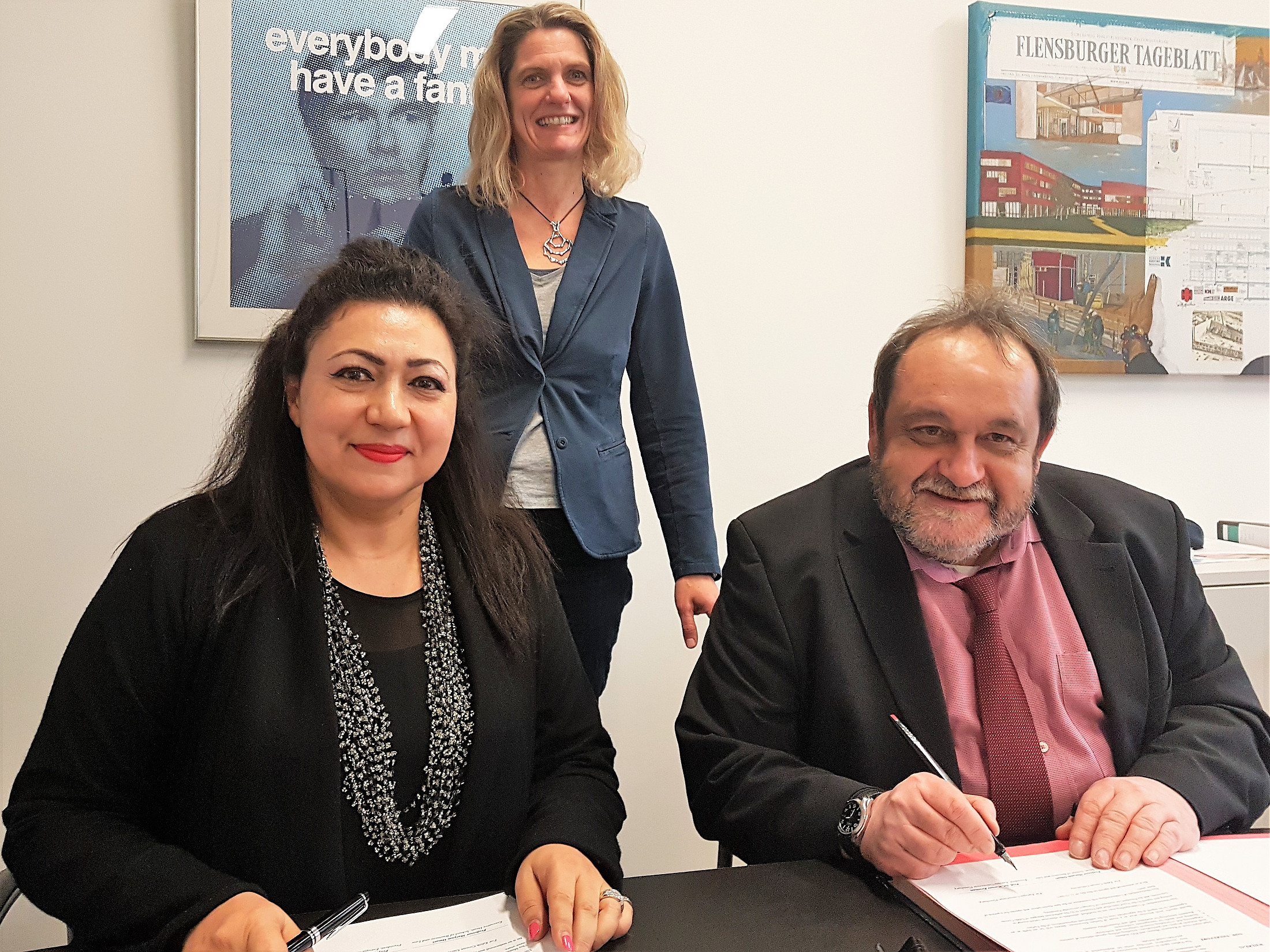 Der Präsident der Europa-Universität Flensburg, Prof. Dr. Werner Reinhart, und Prof. Dr. Maryam Omari, Dekanin der "School of Business and Law" der Edith Cowan University in Perth an der Westküste Australiens, haben heute ein "Memorandum of Understanding" unterzeichnet. Darin bekräftigen beide Hochschulen das Interesse an einer engeren Zusammenarbeit, die beispielsweise gemeinsame Studierenden- und Doktorandenbetreuung, gemeinsame Forschungsprojekte oder gemeinsame Konferenzen beinhaltet. "Wir arbeiten bereits länger auf individueller Ebene sehr eng zusammen, nun soll die Zusammenarbeit institutionell breiter verankert werden", freute sich Susanne Royer, Professorin für strategisches und Internationales Management am Institut für internationales Management und ökonomische Bildung (IIM) der EUF.