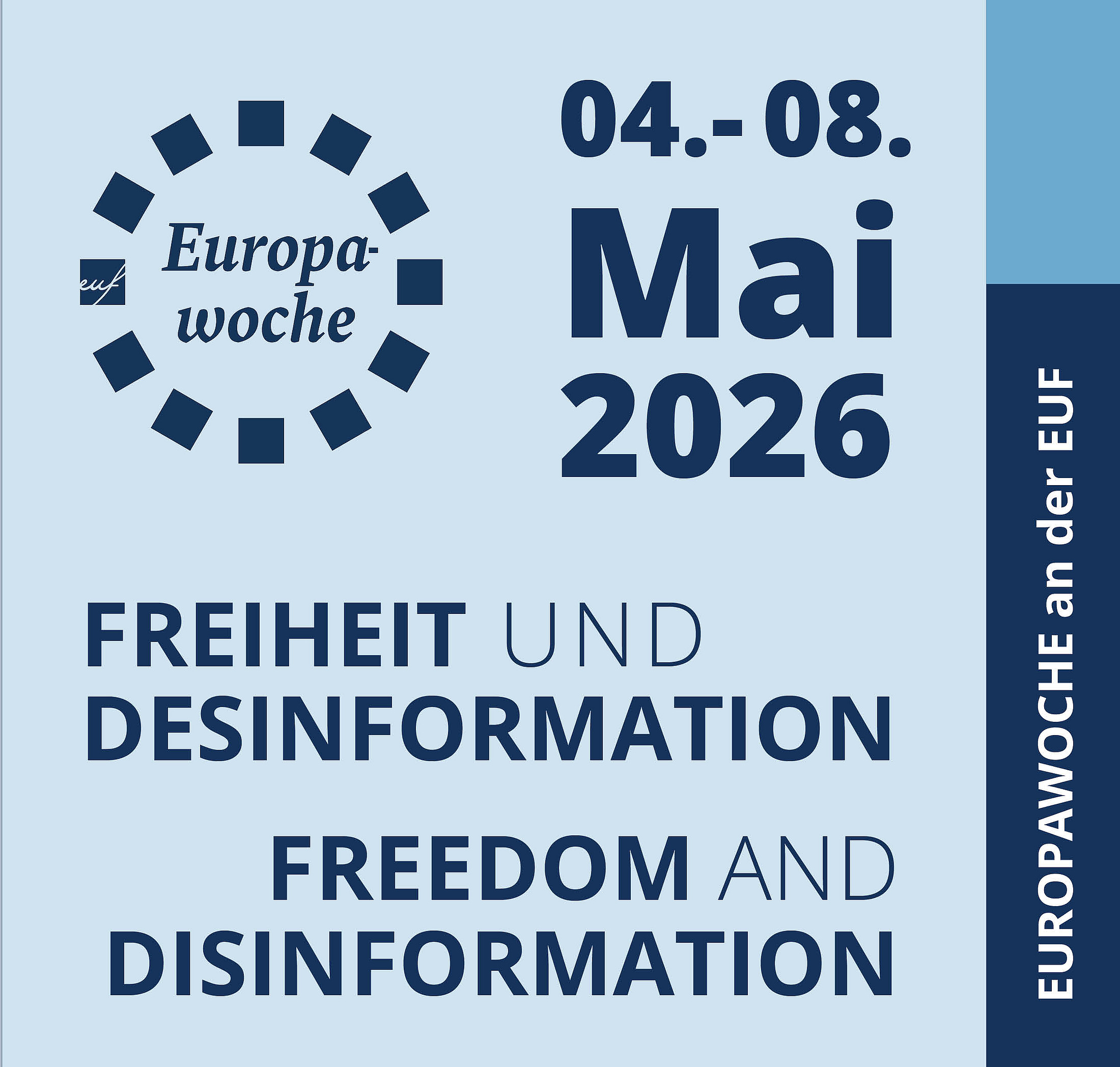 Vom 4. bis 8. Mai findet die Europawoche der Europa-Universität Flensburg (EUF) statt. In diesem Jahr steht das Thema „Freiheit und Desinformation“ im Zentrum – ein drängendes und aktuelles Thema, fordert es die Grundlagen unserer Demokratie heraus. In einer Zeit, in der digitale Technologien, künstliche Intelligenz und gezielte Informationskampagnen die öffentliche Debatte beeinflussen, wird die Balance zwischen freier Meinungsäußerung und Schutz vor Manipulation immer schwieriger. Dieses Spannungsfeld macht die Europawoche mit verschiedenen Formaten sichtbar, lädt zur kritischen Reflektion ein und sucht gemeinsam nach Lösungen.