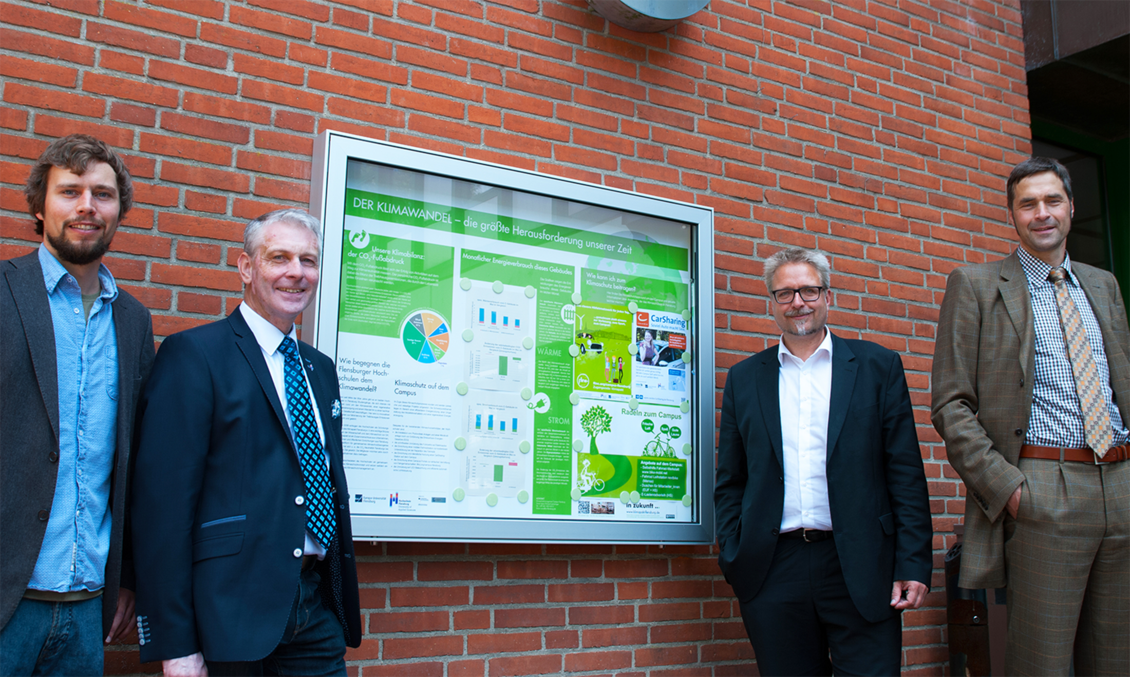 Nun wurden in allen Eingangsbereichen der Hochschulgebäude Schaukästen mit Informationen zum Klimaschutz auf dem Campus installiert. Dort wird der Dreiklang aus Klimawandel-Problembewusstsein, Feedback zum Energieverbrauch und Hinweisen zum Klimaschutz vermittelt, erklärt Simon Laros, Klimaschutzmanager für den Campus Flensburg.