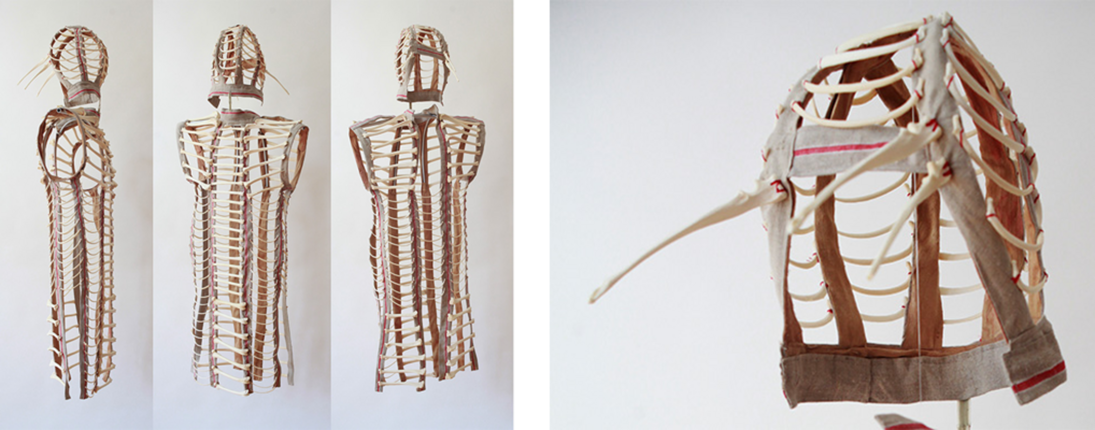 Bone Costumes" sind aus Tierknochen gefertigte, befremdliche Gewänder, die wie zum Überstreifen bereitstehen. Sie thematisieren unter anderem unser zwiespältiges Verhältnis zu Tieren.