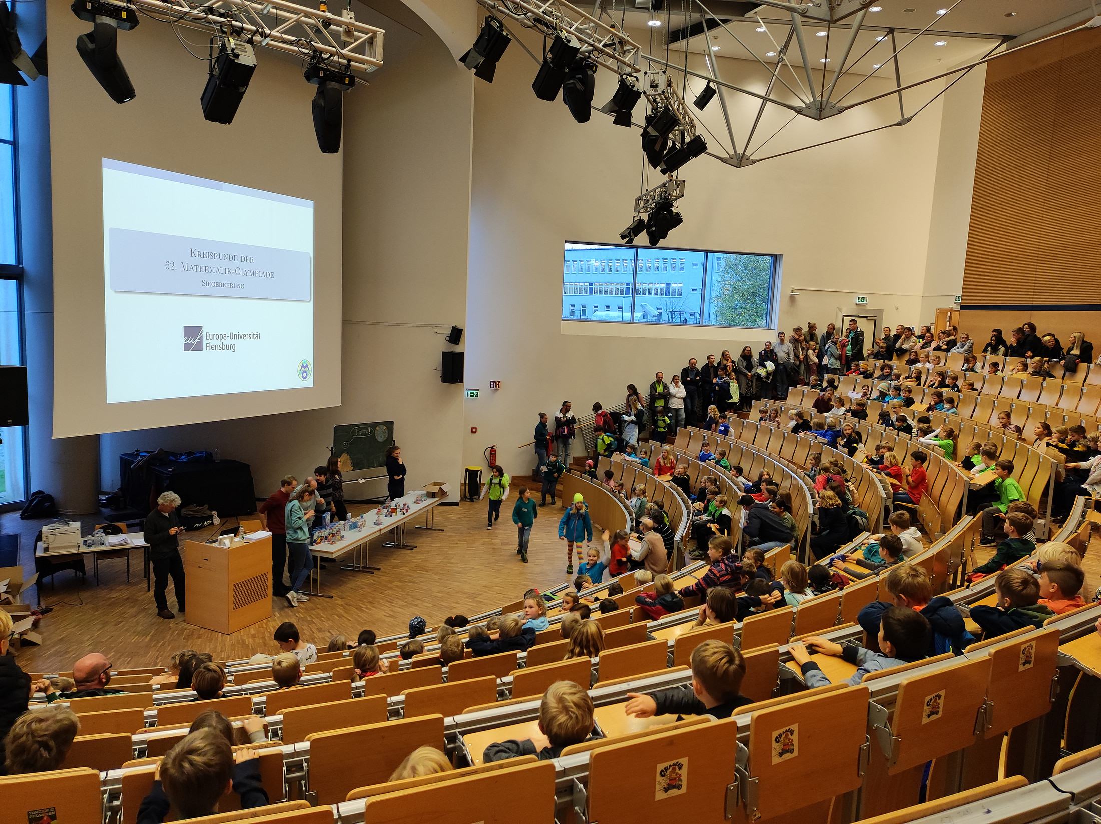Das Flensburger Audimax stand vergangenes Wochenende im Zeichen der Mathematik: 259 Schüler*innen und Schüler traten bei der zweiten Stufe der Matheolympiade in verschiedenen Klassenstufen gegeneinander an.