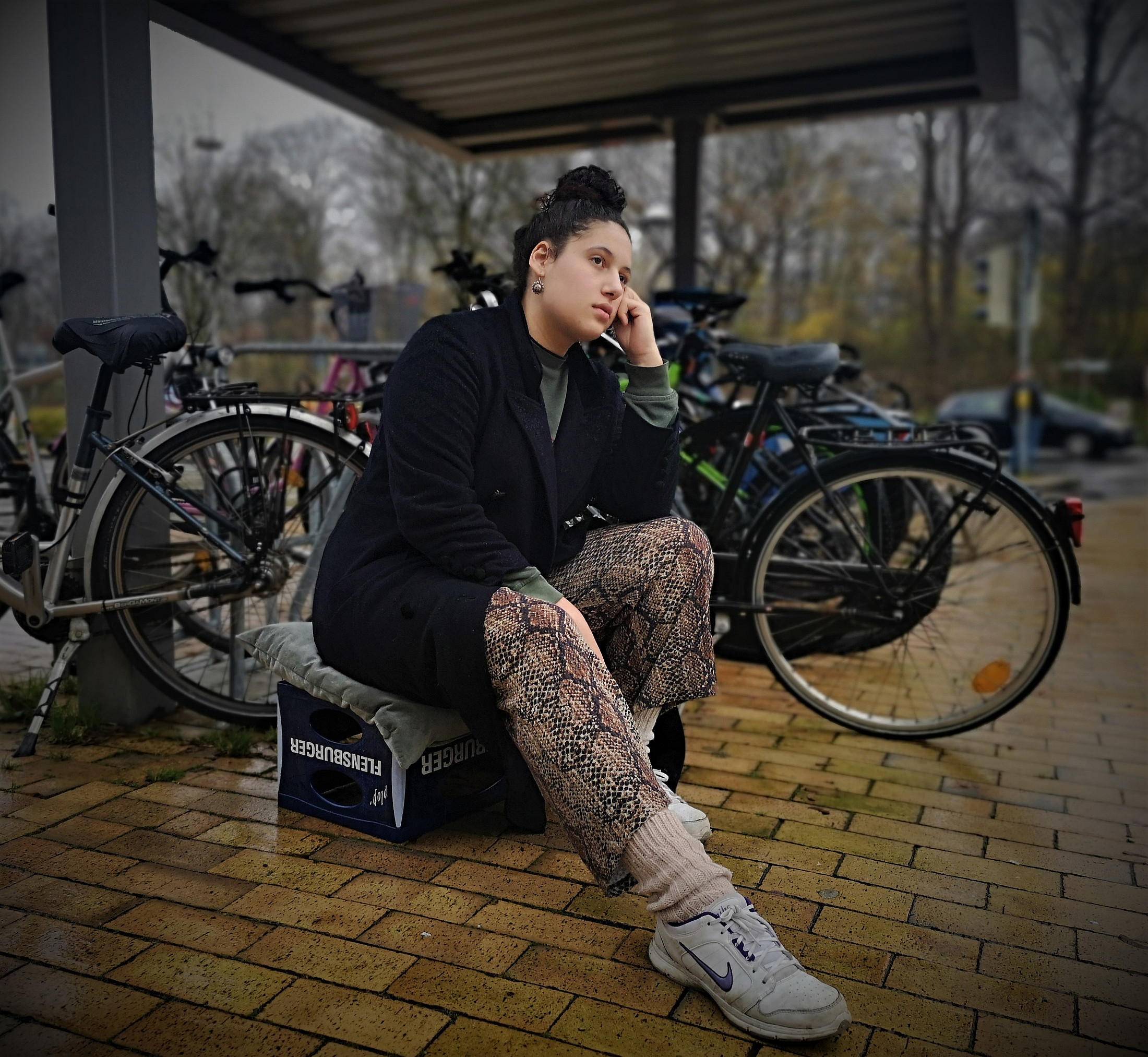 Theaterpädagogin Lotta Bohde hat als Projektleiterin des Flashmobs mit den Schülerinnen und Schülern das unbewegliche Sitzen geübt. "An einem so belebten Ort wie dem ZOB still zu halten, ist nicht einfach. Ich danke den Schüler*innen der KTS, dass sie sich auf das Projekt eingelassen haben. Denn nur dadurch ist eine so große Theateraktion im öffentlichen Raum möglich", freut sie sich.