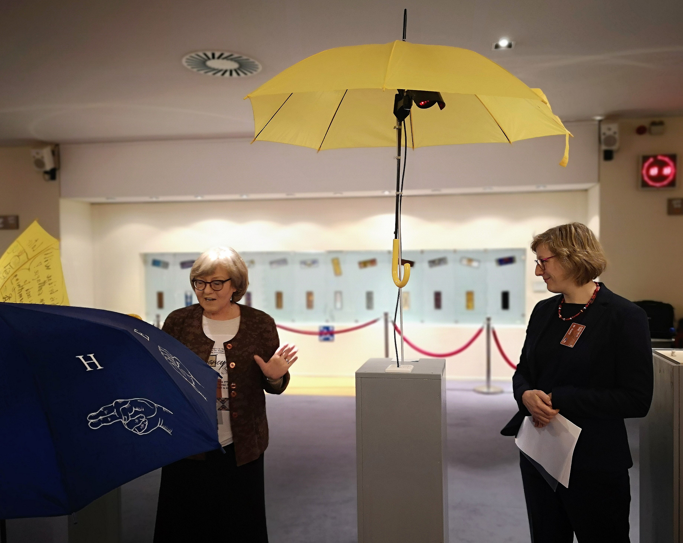 Mit einem "Regenschirm-Park" präsentieren Studierende der Europa-Universität Flensburg (EUF) ihre Interpretation europäischer Werte diese Woche im Europa-Parlament in Brüssel. Eingeladen wurden sie von der schleswig-holsteinischen Europa-Abgeordneten Ulrike Rodust. Sie hatte die EUF im Dezember 2017 besucht und war begeistert: "Begeistert von Ihrem Ziel, dafür Sorge zu tragen, dass Ihre Studierenden Europa verstehen, dass sie Europa leben, fortentwickeln und als Multiplikatoren die europäischen Werte weitertragen. Und – und das ist in diesen Zeiten leider sehr wichtig – dass diese Generation auch bereit ist, Europa zu verteidigen."