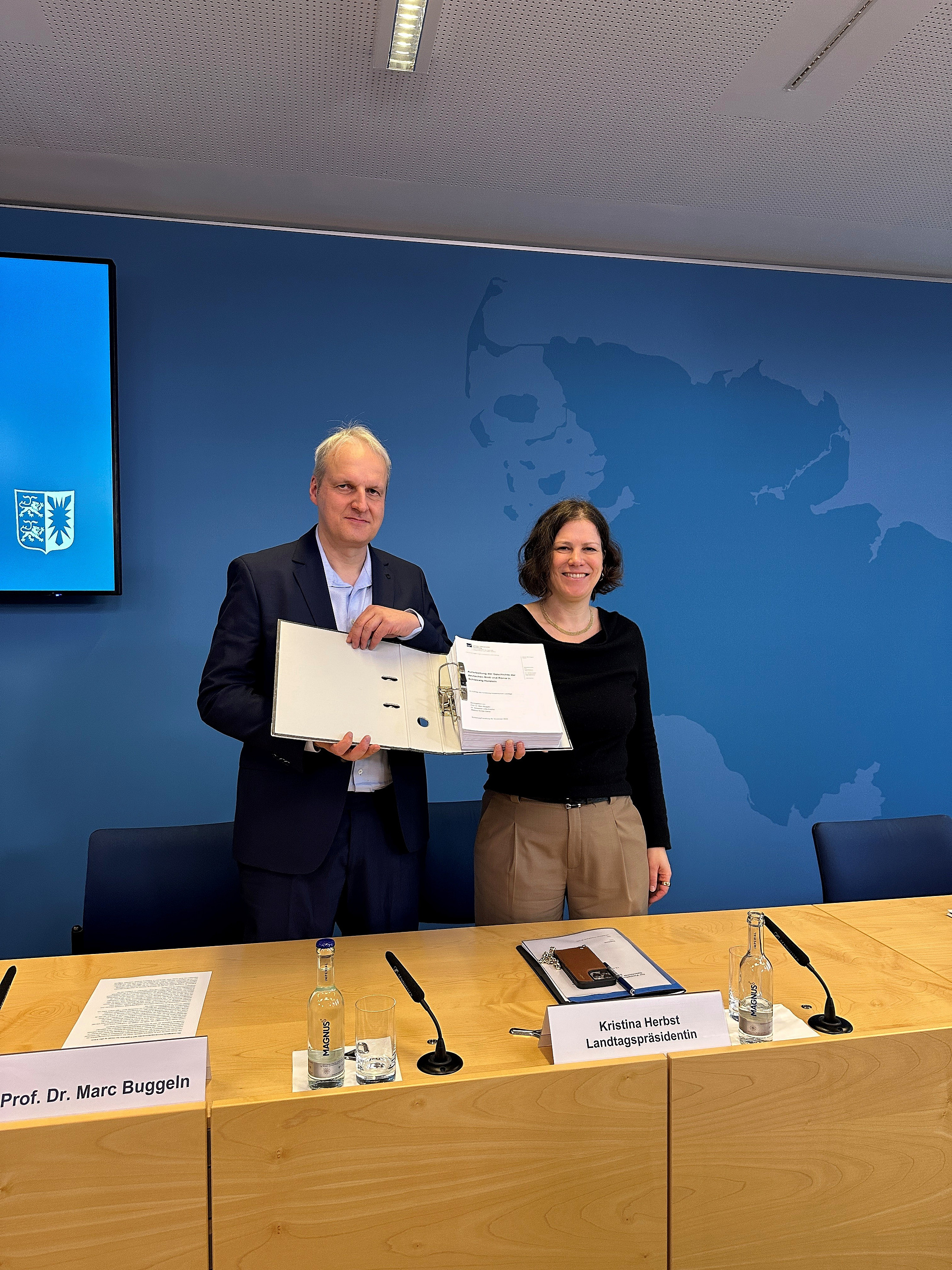 Zur Umsetzung des Landtagsbeschlusses wurde die Forschungsstelle für regionale Zeitgeschichte und Public History der Europa-Universität Flensburg damit beauftragt, zu der Thematik eine wissenschaftliche Studie zu erstellen. Heute (13. Januar) haben Landtagspräsidentin Kristina Herbst und Prof. Dr. Marc Buggeln die wesentlichen Ergebnisse der wissenschaftlichen Aufarbeitung im Rahmen einer Pressekonferenz vorgestellt.