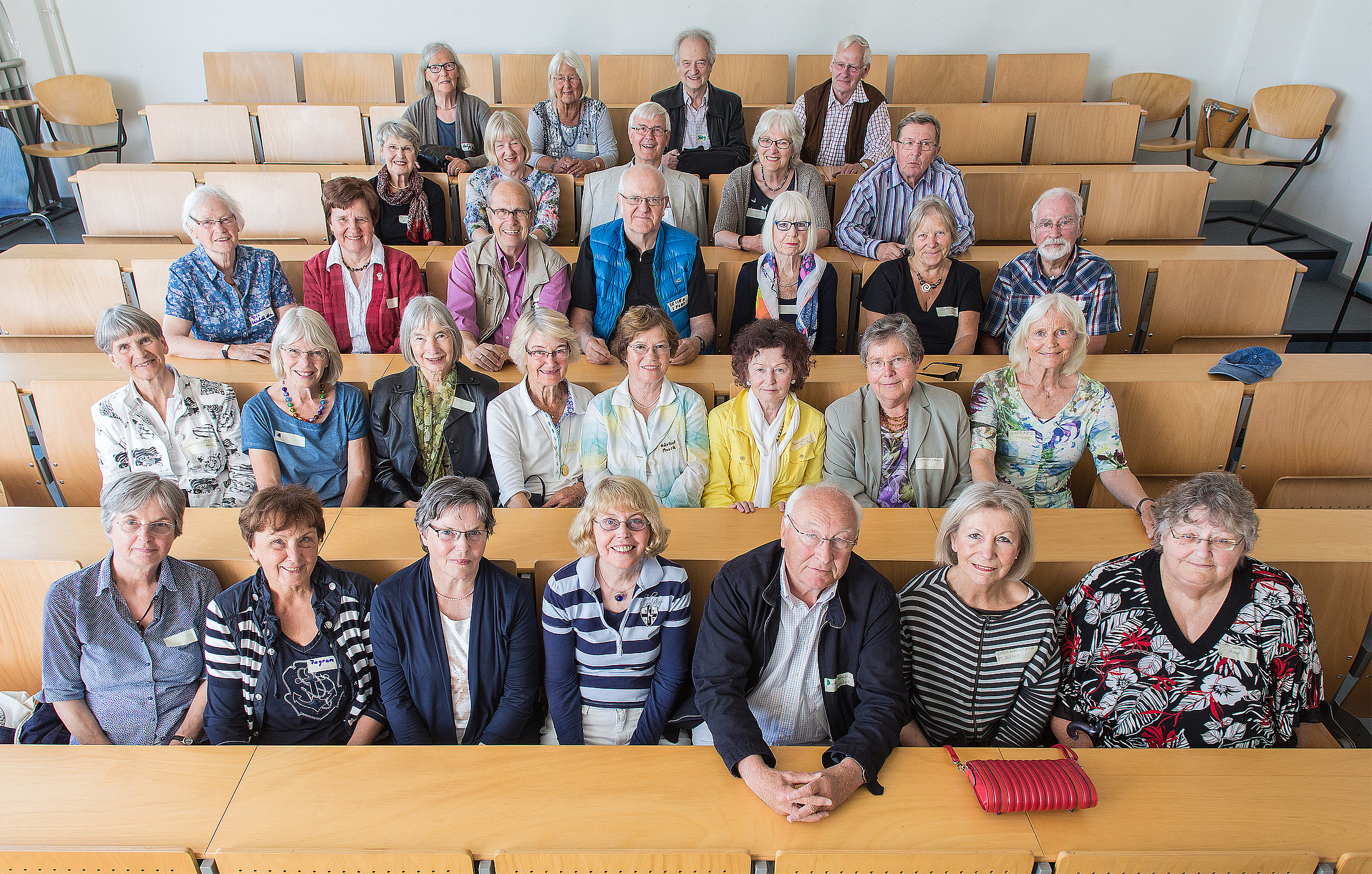 Schwaner-Heitmann hatte zum 50-jährigen Jubiläum ihre ehemaligen Kommilitoninnen und Kommilitonen eingeladen. 30 von ihnen sind der Einladung gefolgt. Die Lehrerinnen und Lehrer, Schulleiter, Bürgermeister und Hochschullehrer, mittlerweile im Ruhestand, leben überwiegend in Norddeutschland und in Dänemark und erinnerten sich einen Tag lang in Universität und Stadt an ihre gemeinsame Studienzeit. So gingen damals etwa die Vorlesungen von 7 Uhr morgens bis 22 Uhr abends – gefeiert wurde dennoch oft und gerne. "Am Ende des Studiums, im Frühjahr 1965, mussten wir an einigen Prüfungstagen bis zu vier Prüfungen hinter einander ablegen. Wir fühlten uns aber nicht sonderlich unter Leistungsdruck, denn jeder Absolvent der Lehramtsausbildung musste sich schriftlich verpflichten, fünf Jahre in Schleswig-Holstein zu bleiben. Also war uns eine Anstellung sicher, egal welcher Notendurchschnitt erreicht wurde", erklärt Schwaner-Heitmann.