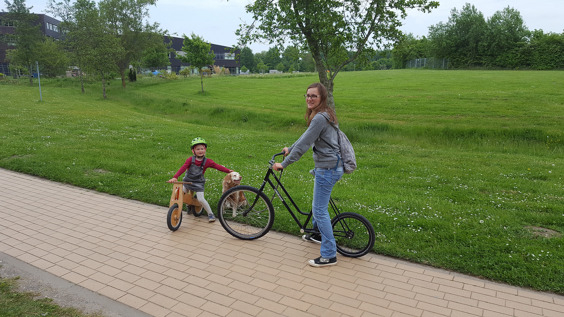 Ein Laufrad bietet einige Vorteile: "Es passt wegen der fehlenden Pedale leichter ins Auto als ein Fahrrad, man kann mit den Füßen immer Bodenkontakt halten, und es fallen nur sehr wenig Wartungsarbeiten an", so die Studentin.