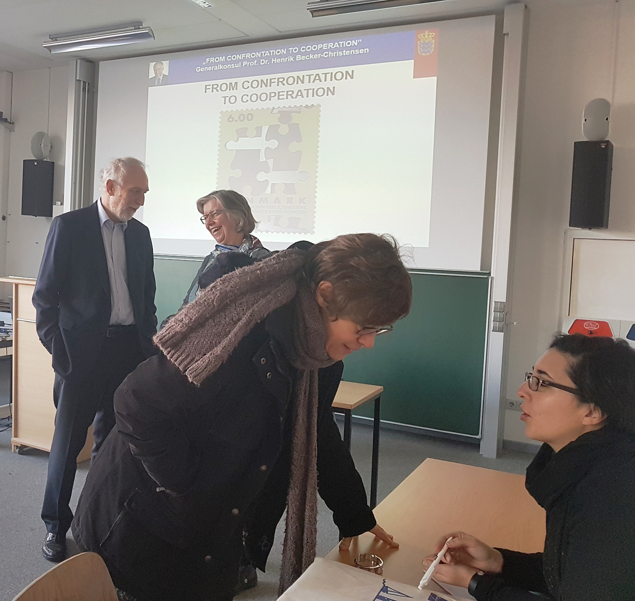 Im Rahmen der Ringvorlesung European Borderscapes, die im neuen Bachelor European Cultures and Society veranstaltet wird, hat am 29. November 2016 der dänische Konsul Henrik Becker-Christensen einen kurzen Vortrag über das Thema: "From Confrontation to Cooperation. The Danish-German borderland" gehalten.