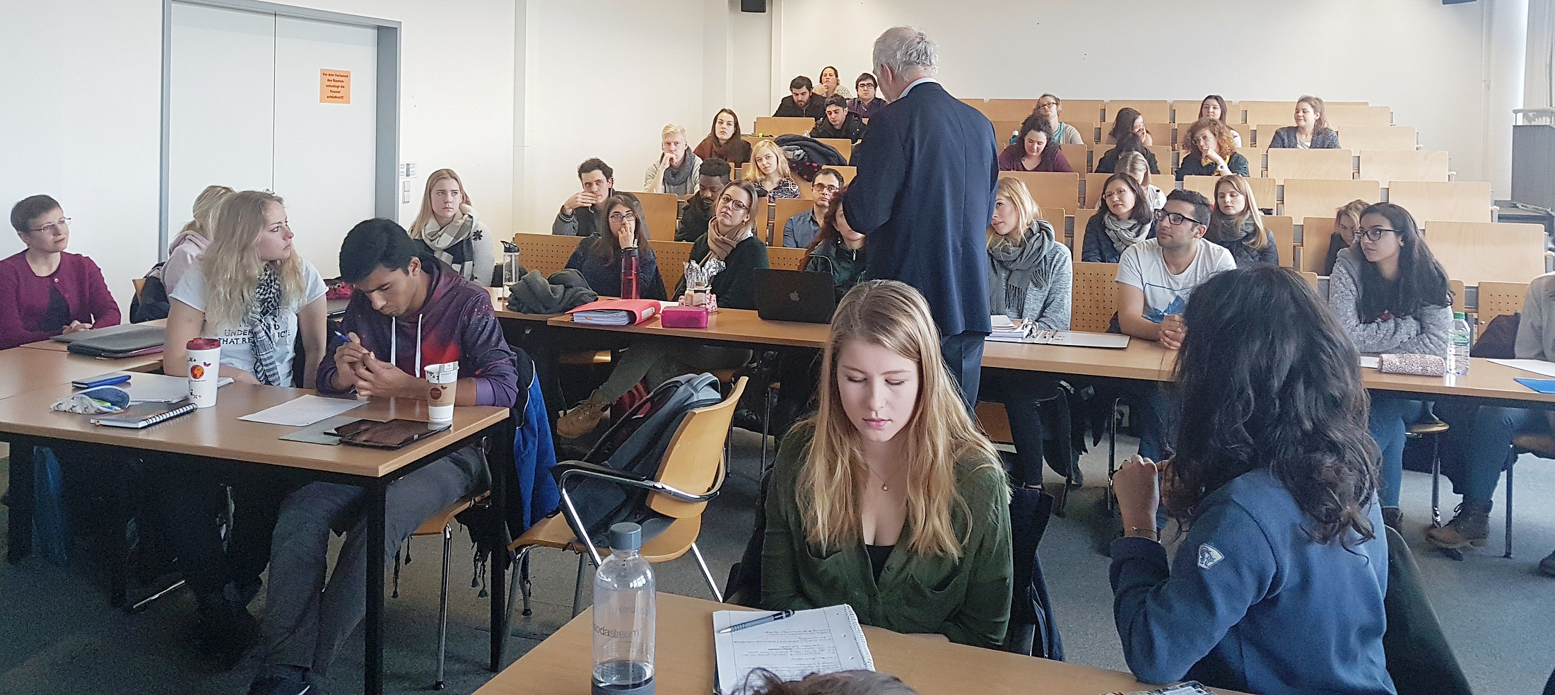 Der dänische Generalkonsul Henrik Becker-Christensen hält vor Studierenden rasanten Geschichtsvortrag