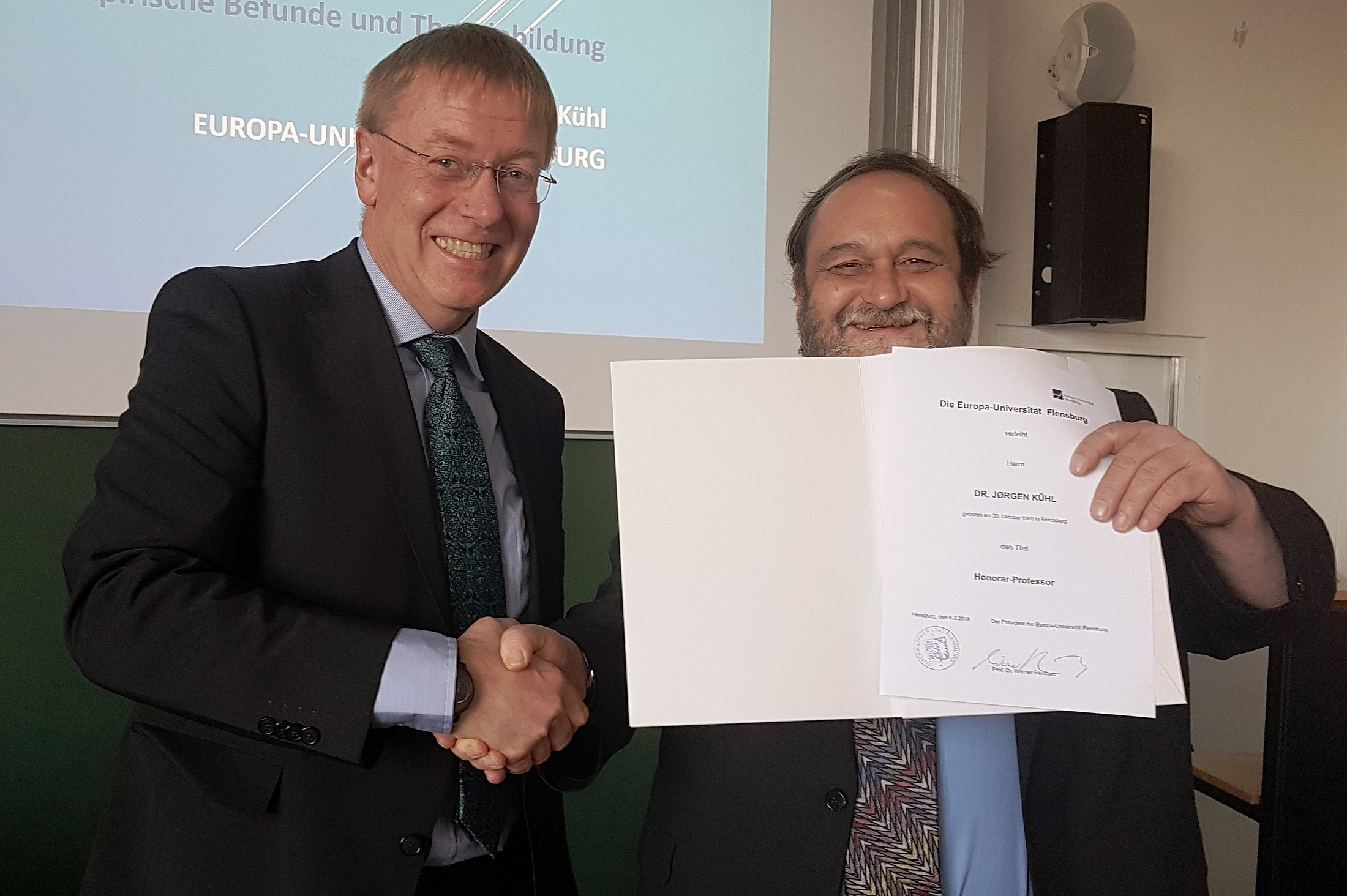 Dr. Jørgen Kühl, Direktor des dänischen Gymnasiums in Schleswig, wurde zum Honorarprofessor für Minderheitenforschung der Europa-Universität Flensburg (EUF) ernannt. Mit der Ernennung würdigt die EUF Kühls herausragende Leistungen in Wissenschaft und Praxis im Bereich der europäischen Minderheitenforschung.