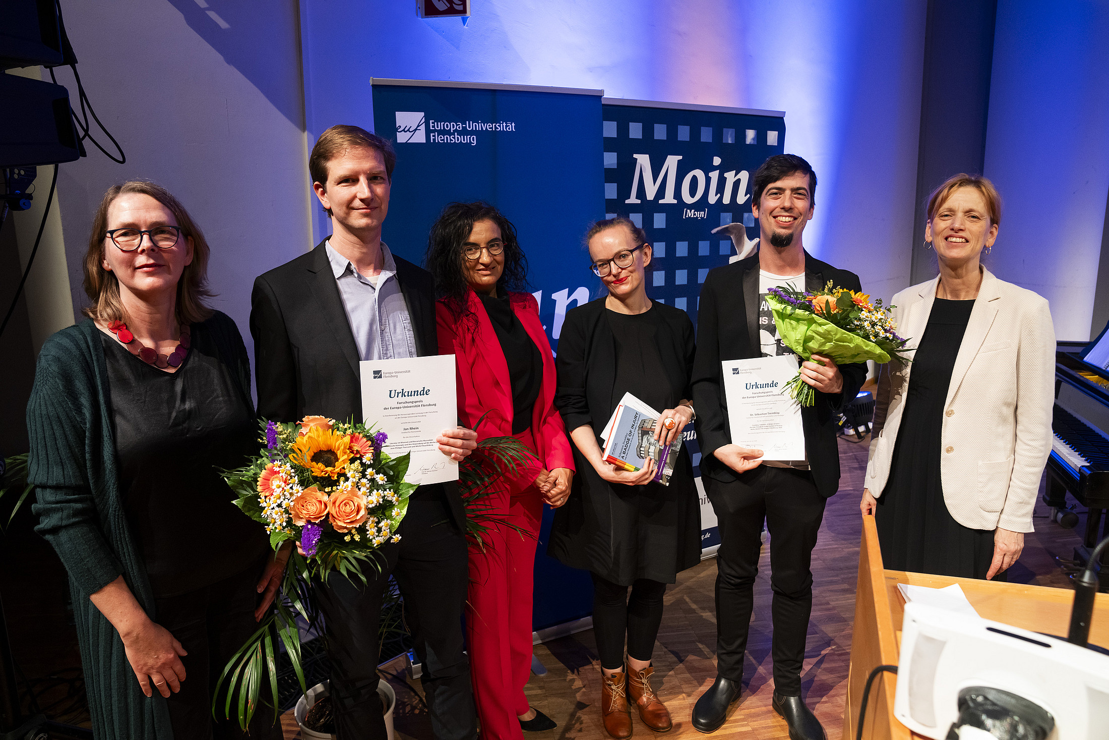 Die Vizepräsidentin für Forschung und Transfer, Prof. Dr. Iulia-Karin Patrut, verlieh zwei Preise für herausragende Forschungsleistungen. Den Preis für eine herausragende Dissertation erhielt der Literatur- und Kulturwissenschaftler Jan Rhein für seine Dissertation "Literatur im Museum und literarische Musealität: Theoretische Konzepte und ihre Anwendung auf die Werke von Jean-Philippe Toussaint und Michel Houellebecq". Der Preis für eine herausragende Forschungsarbeit ging an Dr. Sébastien Tremblay für seine Arbeit "A Badge of Injury. The Pink Triangle as Global Symbol of Memory" ausgezeichnet.