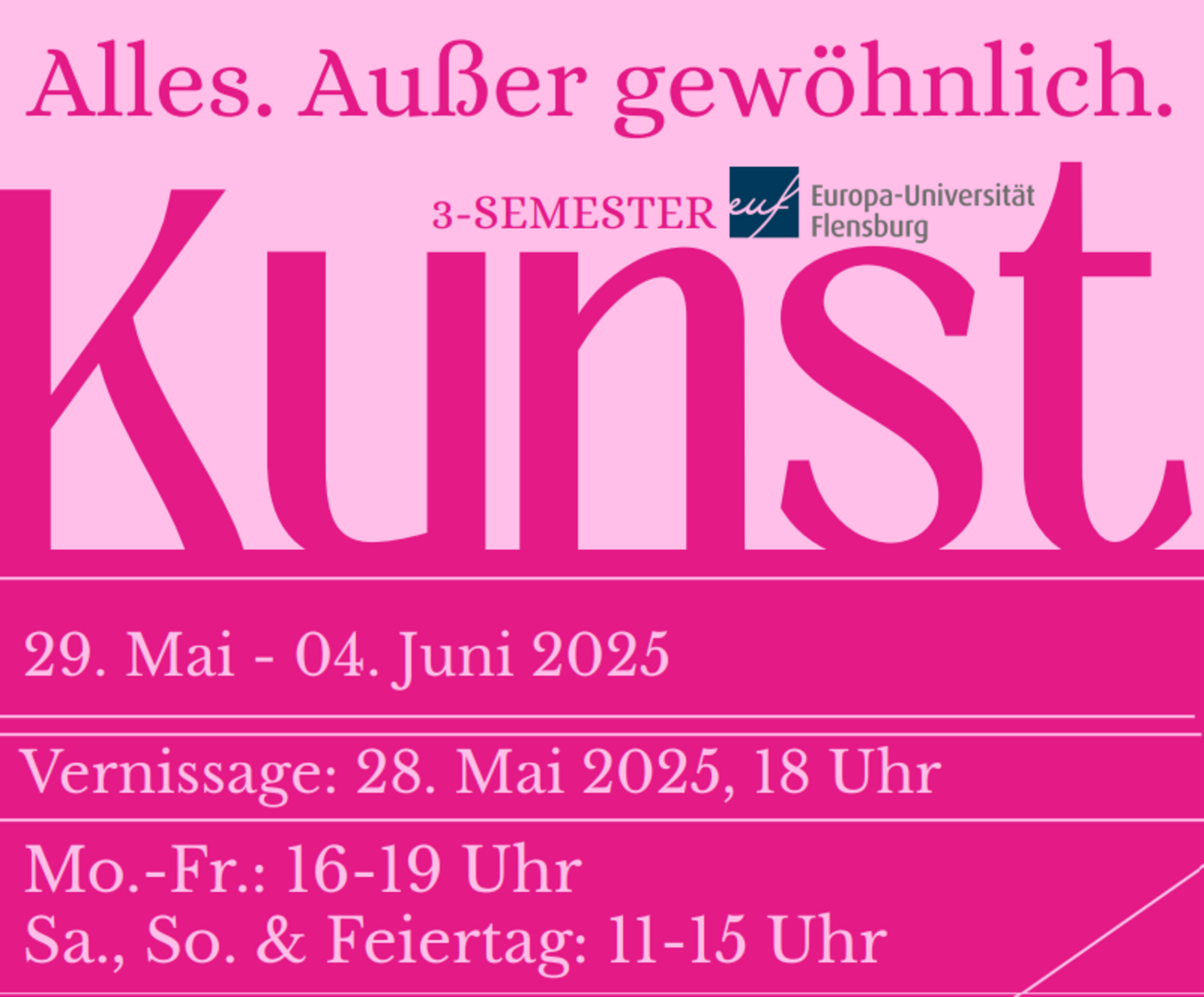 Wir, Kunststudierende der Europa-Universität Flensburg, laden herzlich ein zu unserer 3-Semester-Ausstellung unter dem Motto "Alles. Außer gewöhnlich".