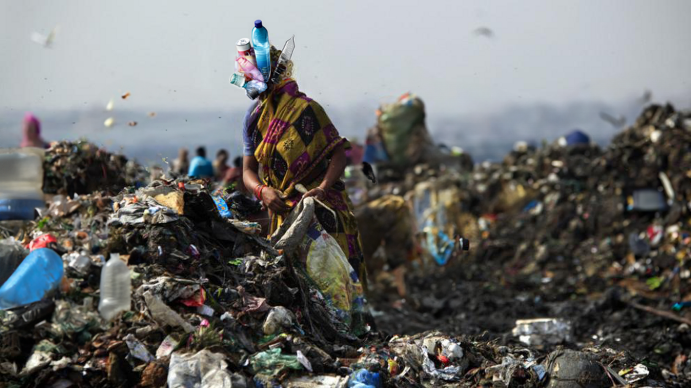 Eine visuelle Verdichtung der beeindruckenden Präsenz der Ghazipur Mülldeponie in Neu Delhi.