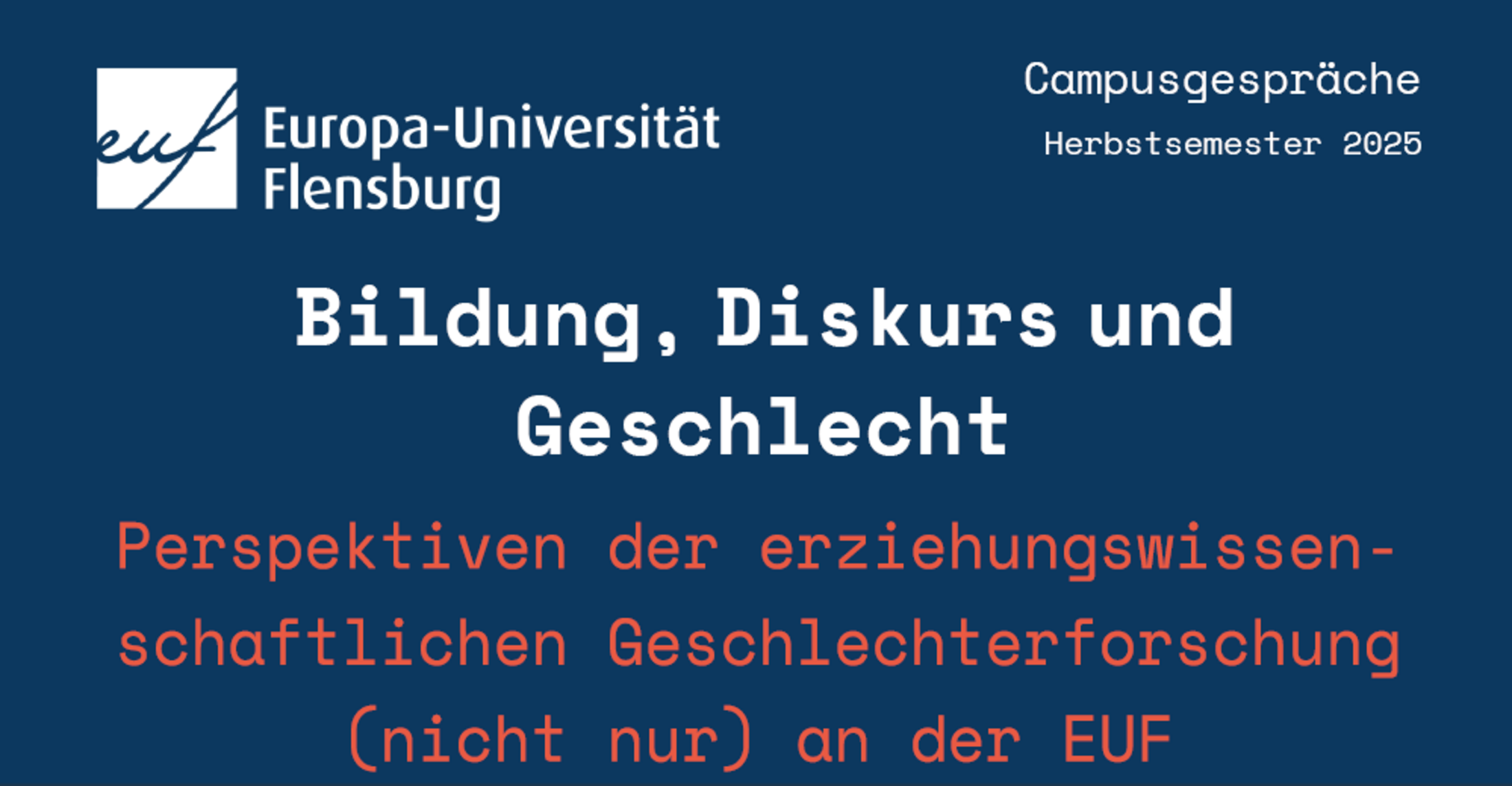 Flensburger Campusgespräche: Bildung, Diskurs und Geschlecht. Perspektiven der erziehungswissenschaftlichen Geschlechterforschung (nicht nur) an der EUF