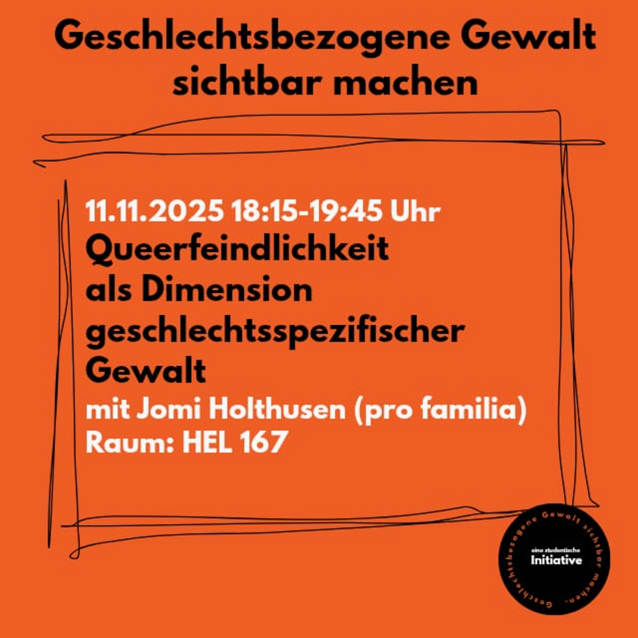 Mit unserer Veranstaltungsreihe möchten wir einen Beitrag dazu leisten, das Ausmaß geschlechtsbezogener Gewalt gegen Frauen und queere Menschen sichtbar zu machen und für die verschiedenen Formen sowie deren Auswirkungen zu sensibilisieren.
