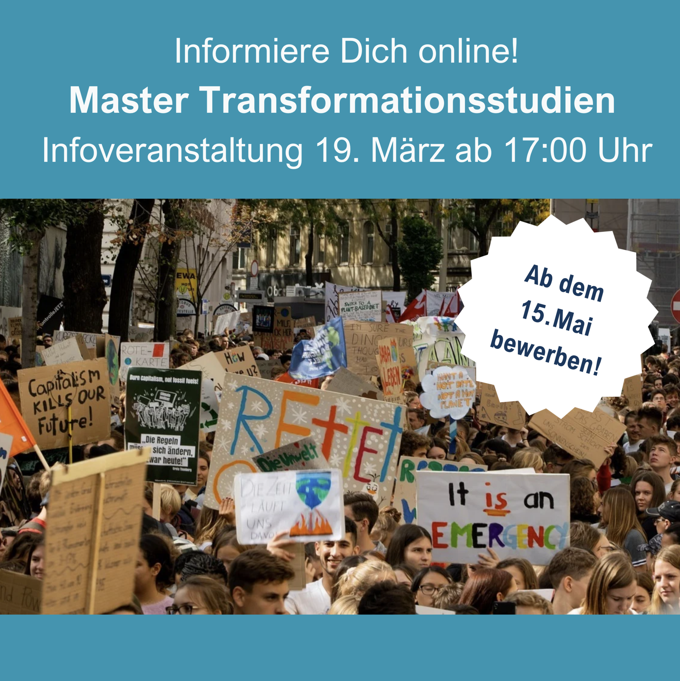 Wir laden Dich zur online Infoveranstaltung für den Master Transfomationsstudien ein.