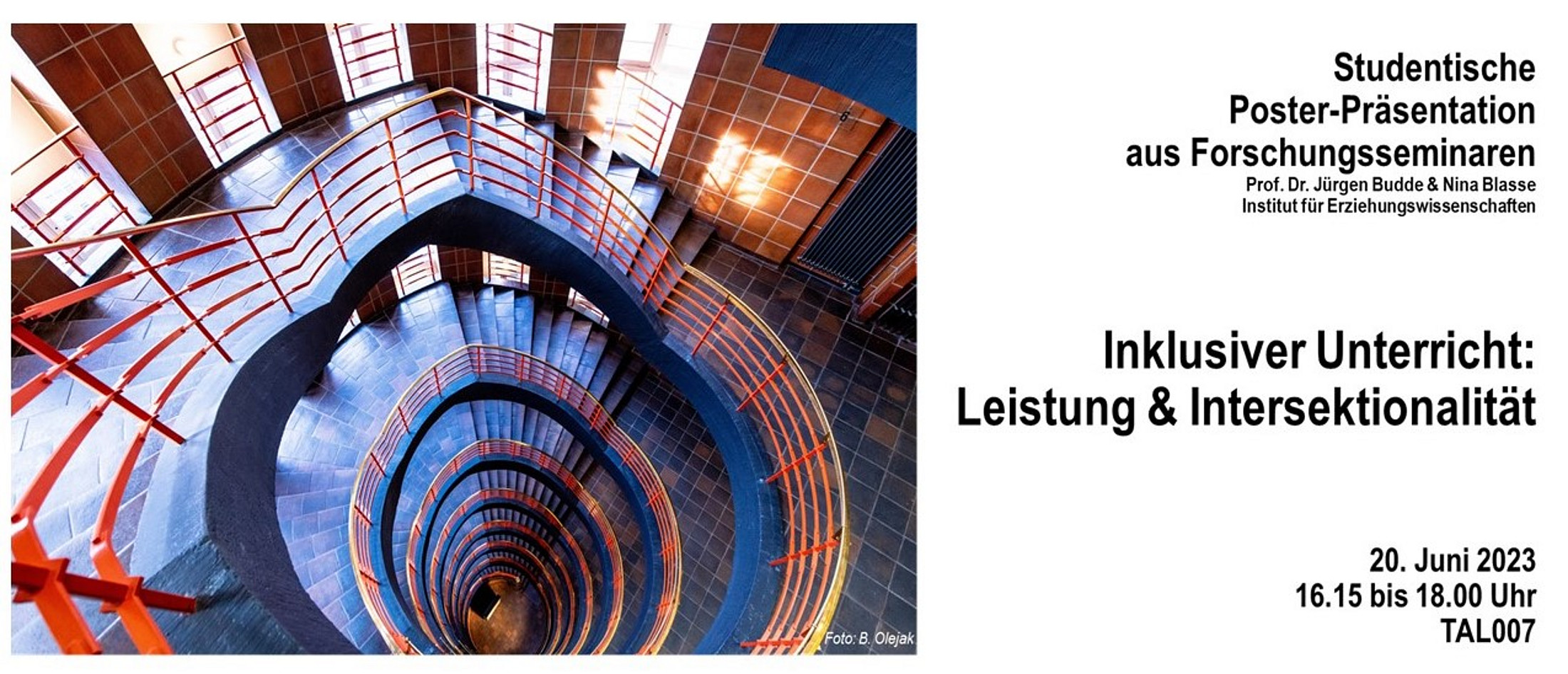 Inklusion und Exklusion hängen im schulischen Unterricht unmittelbar miteinander zusammen und sind zugleich mit der schulischen Leistungsordnung verknüpft. In zwei Forschungsseminaren von Dr. Nina Blasse und Prof. Dr. Jürgen Budde, beide Abteilung Schulpädagogik wurden die Prozesse der Inklusion und Exklusion aus verschiedenen Blickwinkeln von Lehramtsstudierenden untersucht. In dem Seminar von Nina Blasse wurde der Blick auf Leistung, Leistungserbringung und die verschiedenen Aspekte zur Herstellung dessen, was Leistung ausmacht, gerichtet. In dem von Prof. Dr. Jürgen Bude wurden Prozesse aus einer intersektionalen Perspektive, d.h. unter Berücksichtigung von sozialen Kategorien wie Geschlecht, Milieu, Migrationsgeschichte oder Behinderung, betrachtet.
