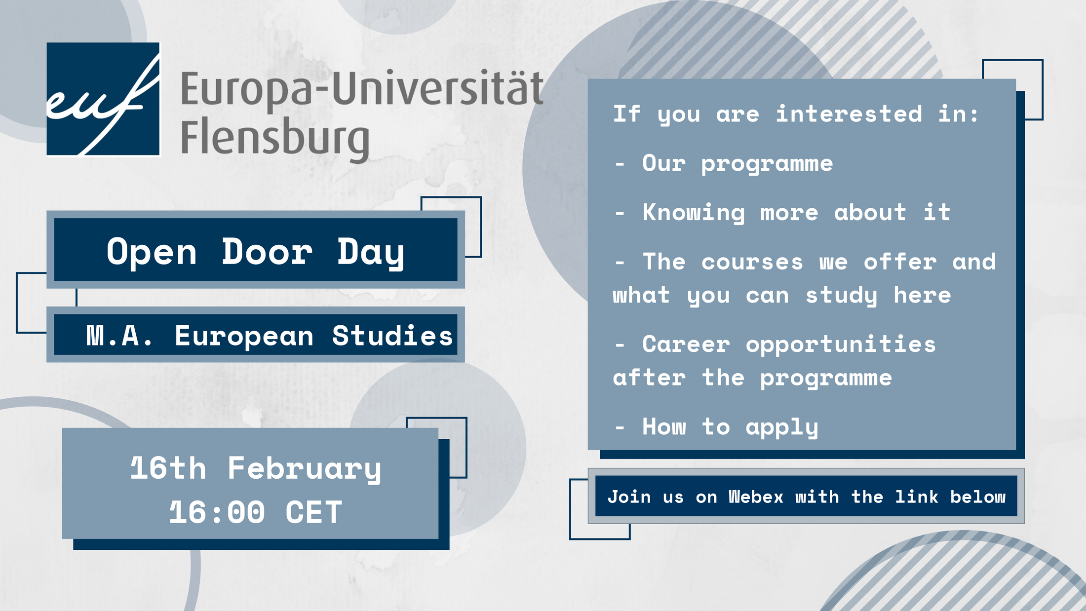 M.A. European studies is offering an ONLINE open door day on February 16th at 4pm (CET).