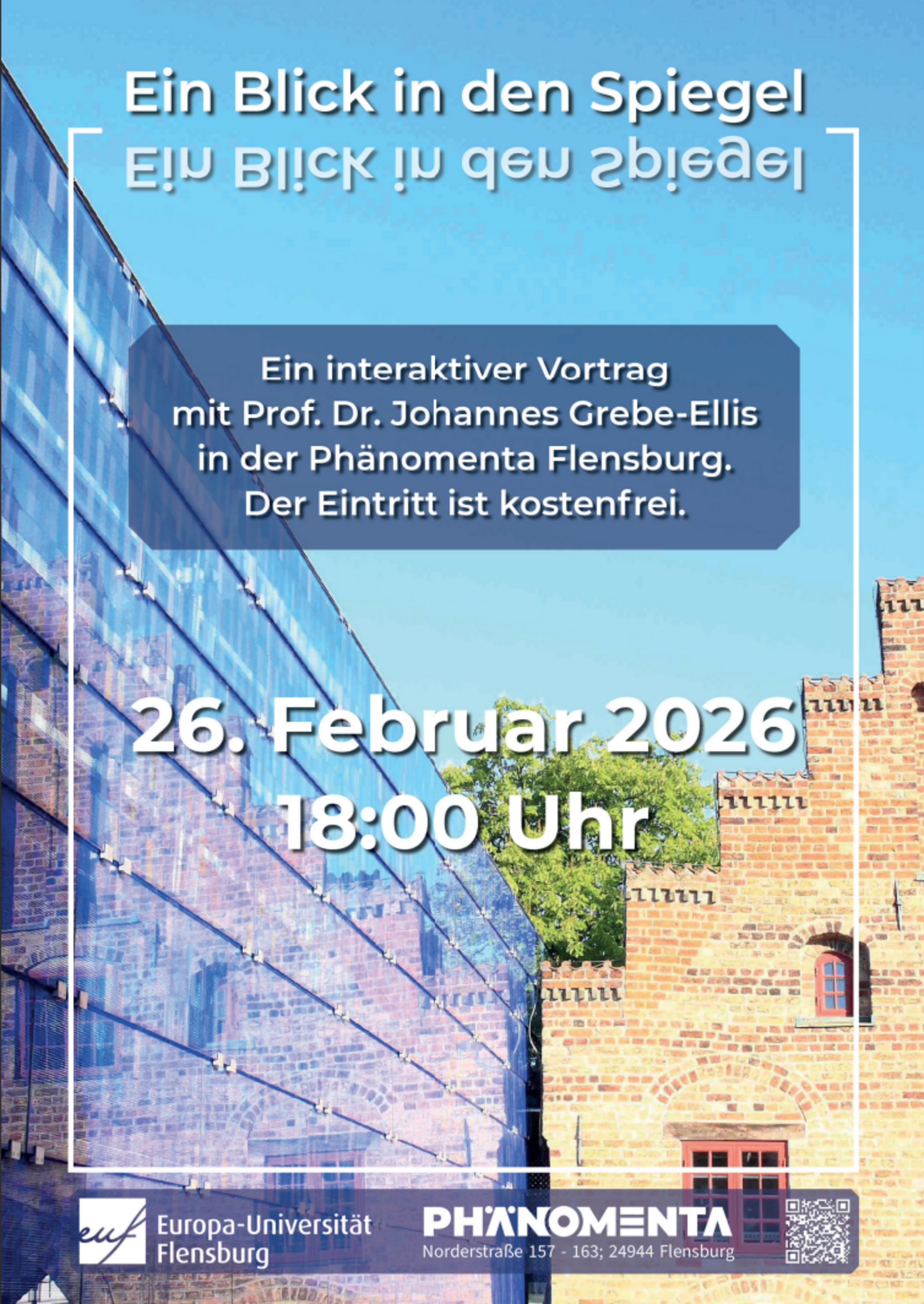 Prof. Dr. Johannes Grebe-Ellis, Bergische Universität Wuppertal wird im Rahmen der Reihe „Physik in der dunklen Jahreszeit“ in seinem Vortrag der physikalischen Perspektive auf den Spiegel künstlerische Blicke gegenüberstellen. In einfachen Experimenten geben wir Spiegeln die Gelegenheit, uns unsere Fragen zu beantworten und Erfahrungen im Spiegelraum zu sammeln. Die Reihe wird vom Institut für Physik und ihre Didaktik und Geschichte gemeinsam mit der Phänomenta veranstaltet.