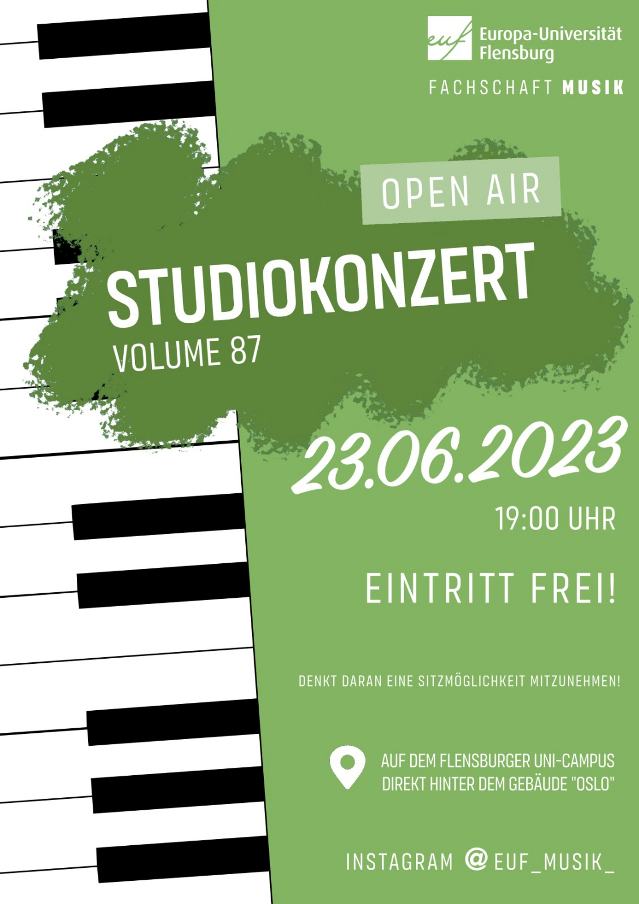 Die Fachschaft Musik lädt alle Studierenden und Beschäftigten der Europa-Universität Flensburg zum allsemesterlichen Studiokonzert ein. Dieses mal ist es ein Open-Air Konzert hinter dem Gebäude OSLO.