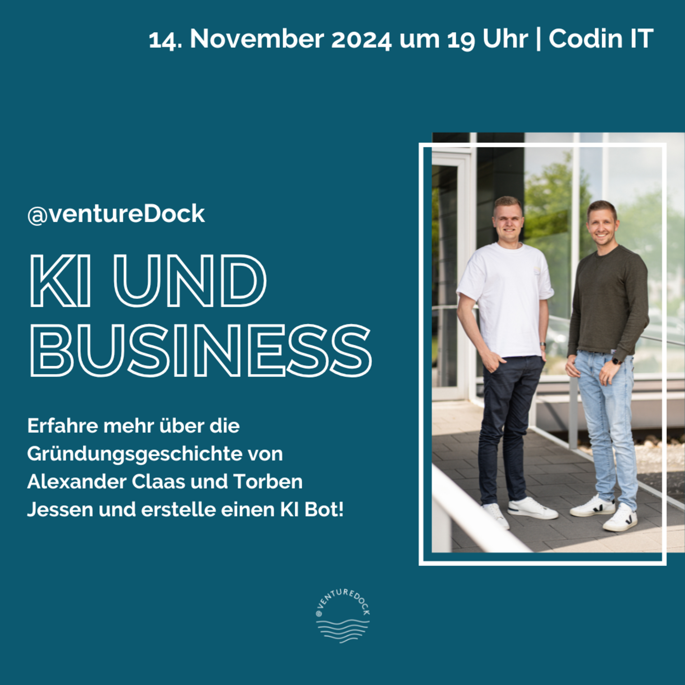 Alexander Claas und Torben Jessen zu Gast im @ventureDock. Die Beiden haben schon mehrmals gegründet und haben auf ihrem Weg u. a. am Überflieger-Wettbewerb teilgenommen und die Chance gehabt, zum Silicon Valley zu fliegen.