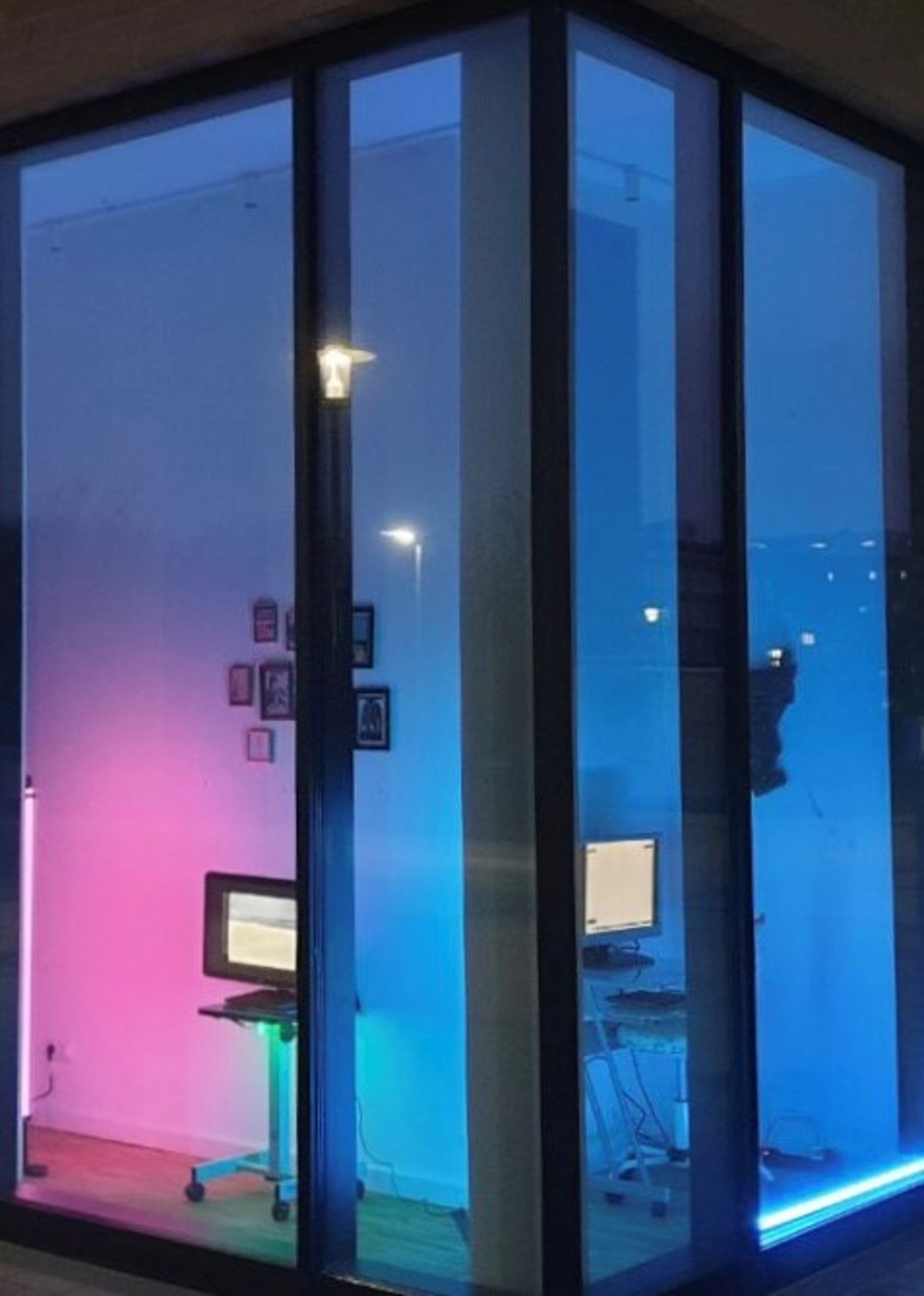Im Schaufenster ("Showroom") des Gebäudes Tallins befindet sich eine hybride Ausstellung zu digitalen Mikroformatkulturen. Sie behandelt den kulturellen Zwischenraum von analogen und digitalen Realitäten und gewährt einen künstlerischen Blickwinkel auf kulturelle Güter unserer digitalen Kommunikation und ihren Praktiken.