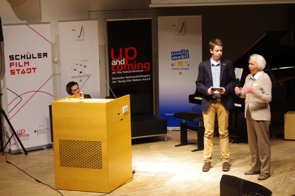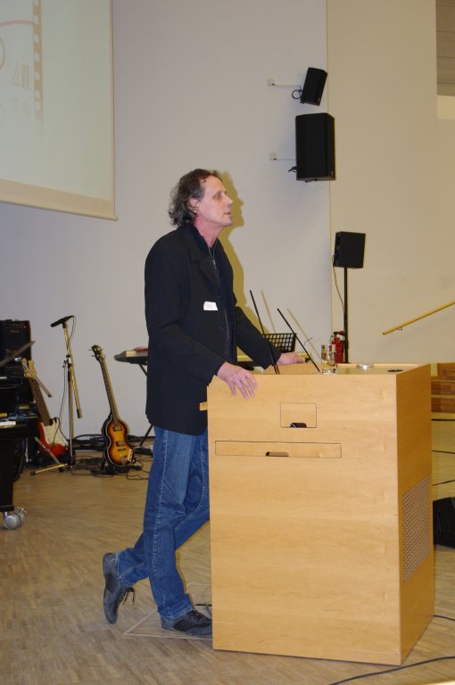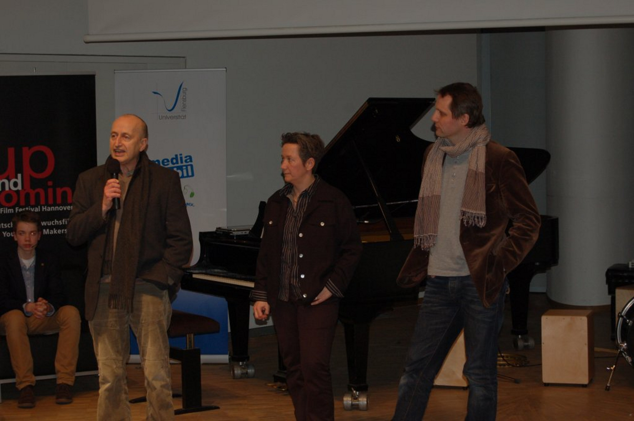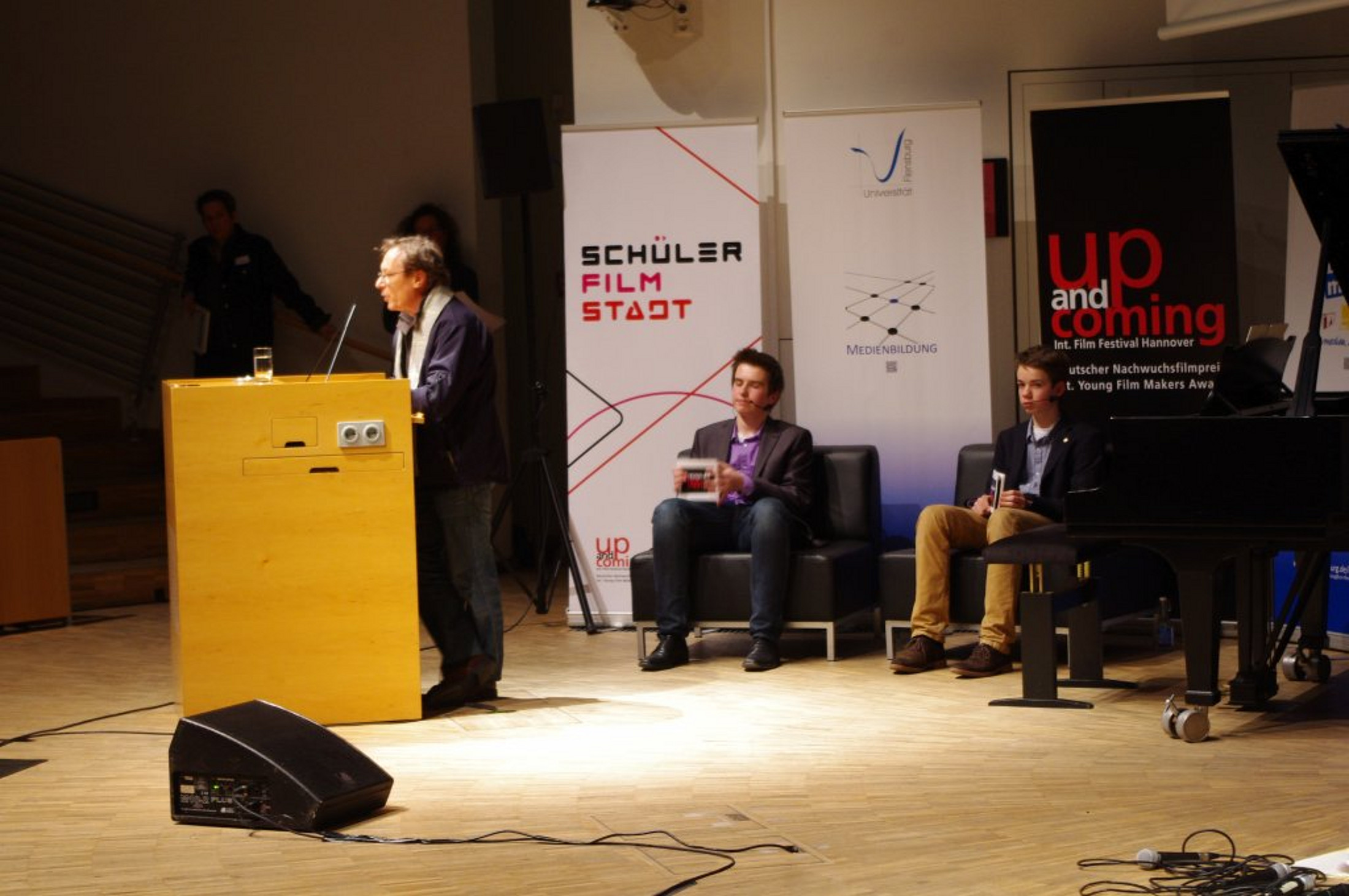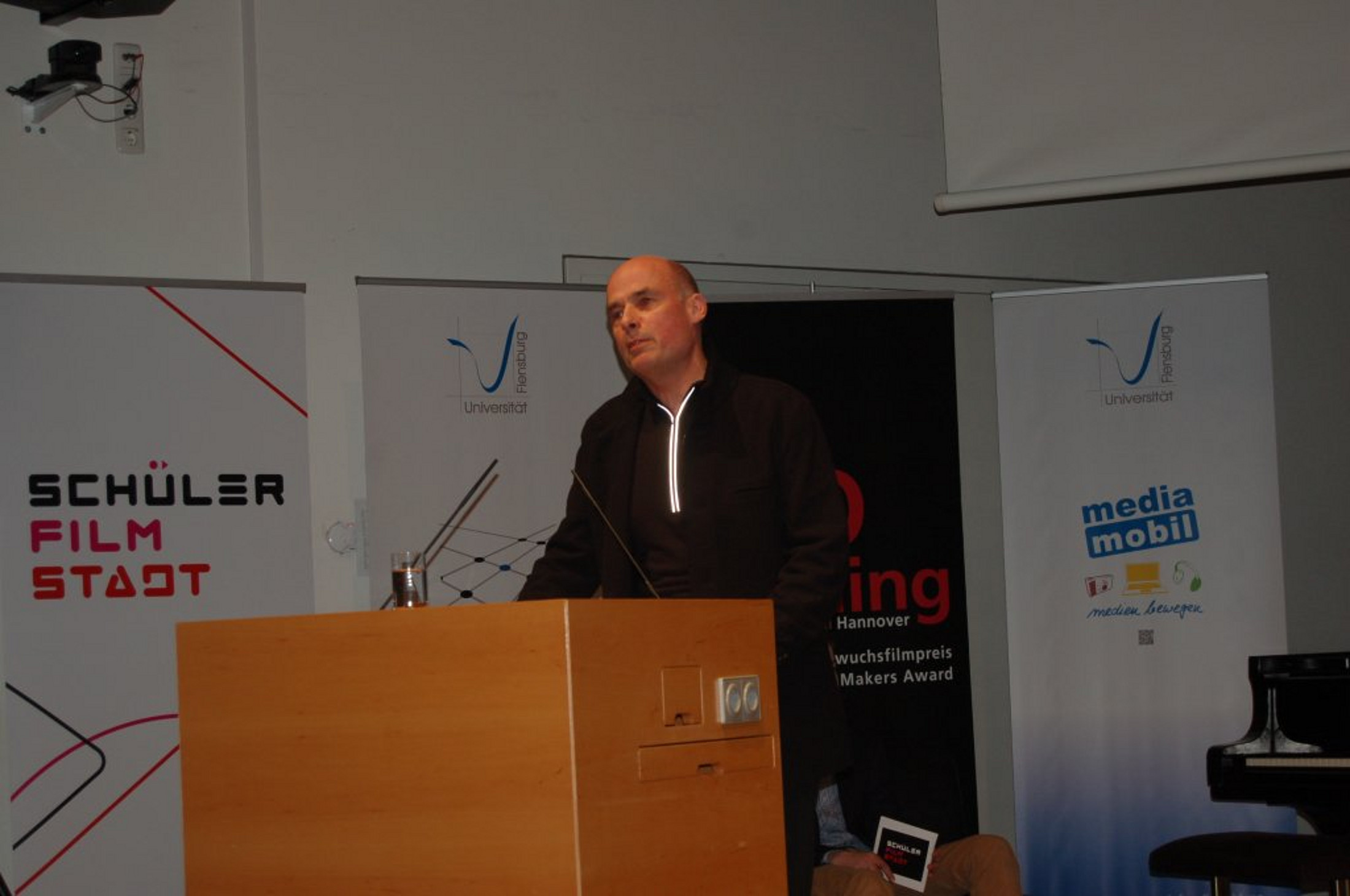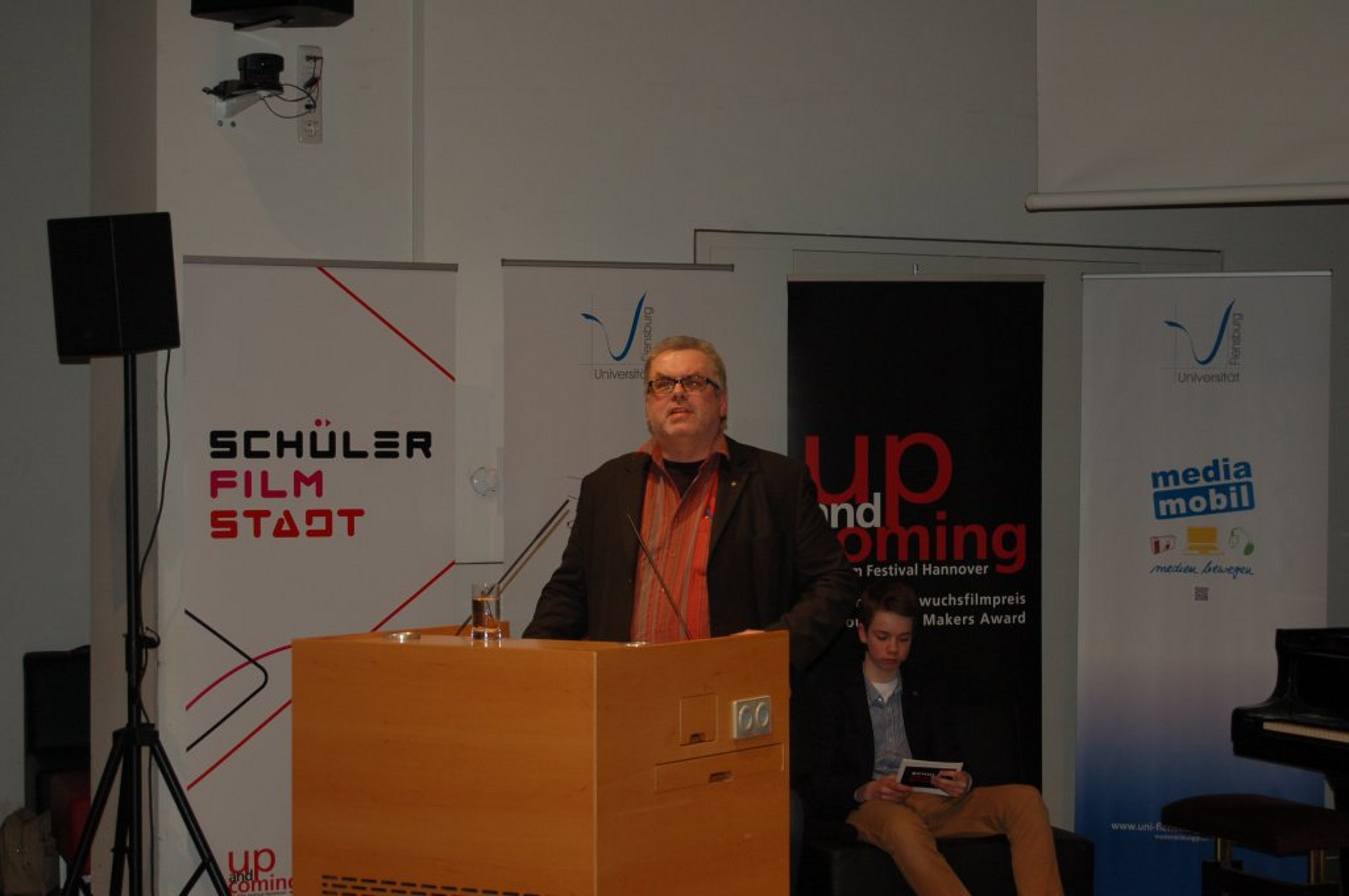 Burkhard Inhülsen, von den Moderatoren als "Erfinder der Filmstadt" angekündigt, erklärte, wie es zu diesem Projekt gekommen sei. 1982 habe er, zum ersten Mal, bundesweit ein Schülerfilmfestival organisiert und war von der Menge der Einsendungen und vom Erfolg des Festivals so überrascht, dass er es bis heute unter dem Titel "Up and coming" fortführt – allerdings nur alle zwei Jahre. Im Zusammenhang mit dieser Arbeit hat er die Idee zu der "SchülerFilmStadt" entwickelt, ein Projekt, das vom Bundesministerium für Bildung und Forschung unterstützt wird. Die Zusammenarbeit mit der nördlichsten Stadt des Projekts habe ihm bisher unglaublich viel Spaß gemacht, ließ er wissen.