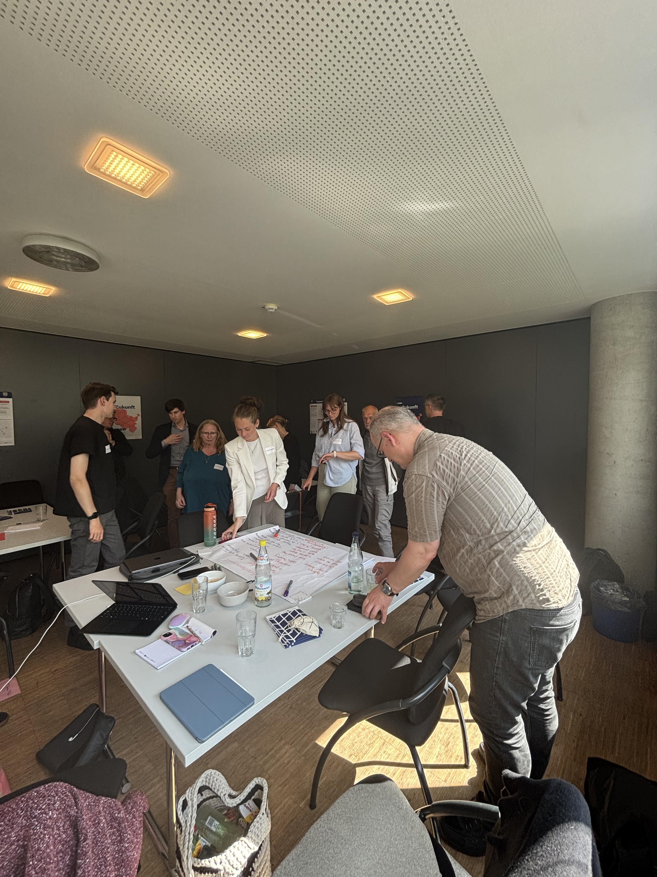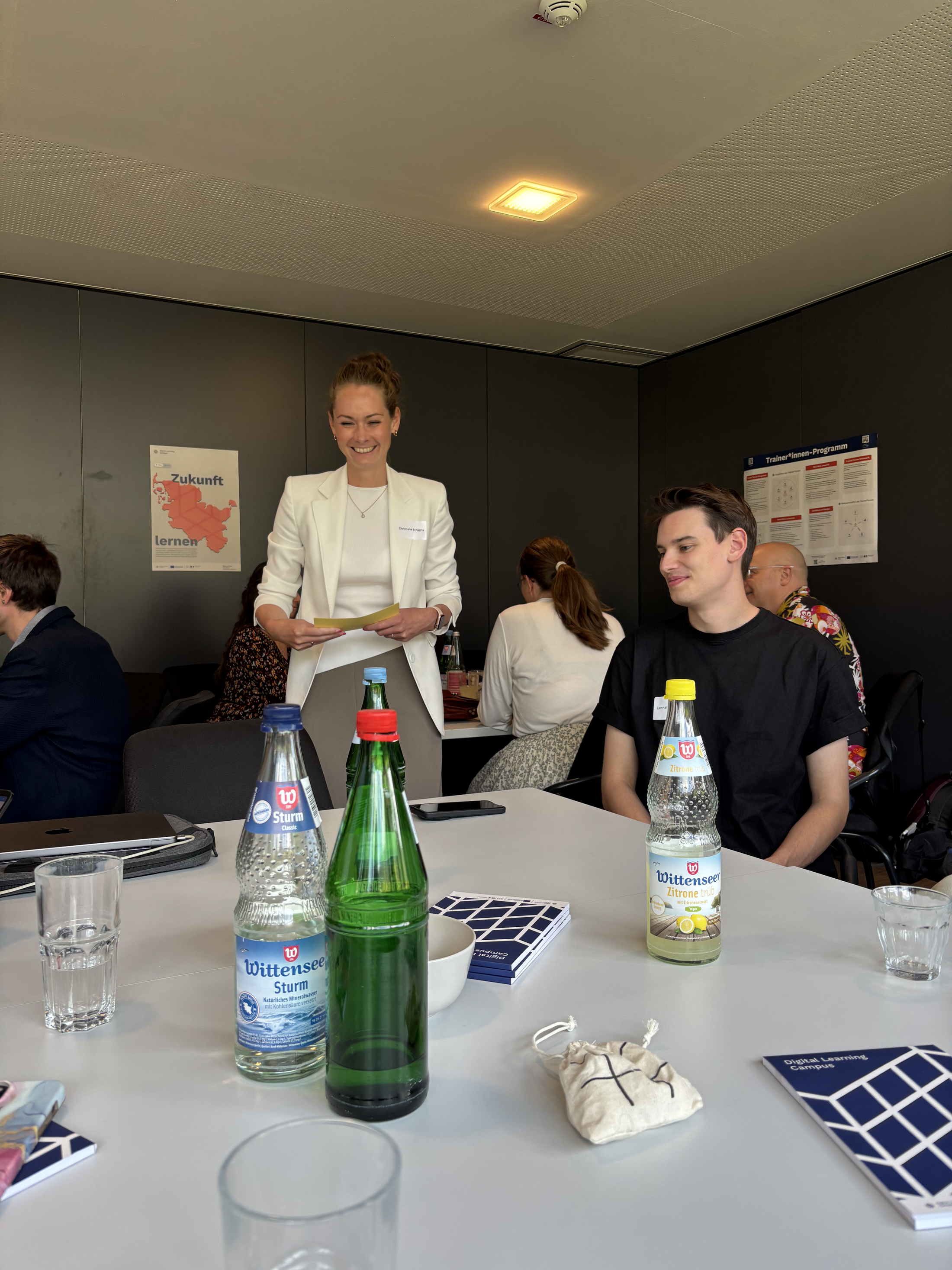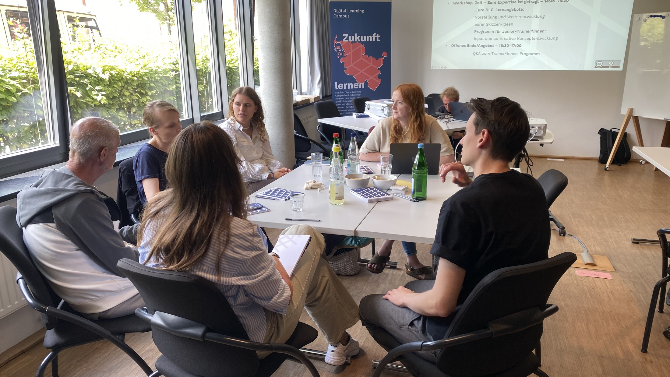 Im Anschluss ging es an die Besprechung konkreter Lehrkonzepte: In Gruppenarbeiten stellten die Trainer*innen mitgebrachte Lehrkonzepte vor und besprachen unter Anleitung von Christiane Schätzle und Tristan Tietz vom DLC-Entwicklungshub, wie man diese verbessern oder weiterentwickeln könnte. Teilweise waren diese Lehrkonzepte schon sehr weit gediehen, teilweise gab es nur grobe Ideen, bei denen die anderen Trainer*innen dabei helfen könnten, diese zu einem konkreteren Konzept auszuschöpfen.