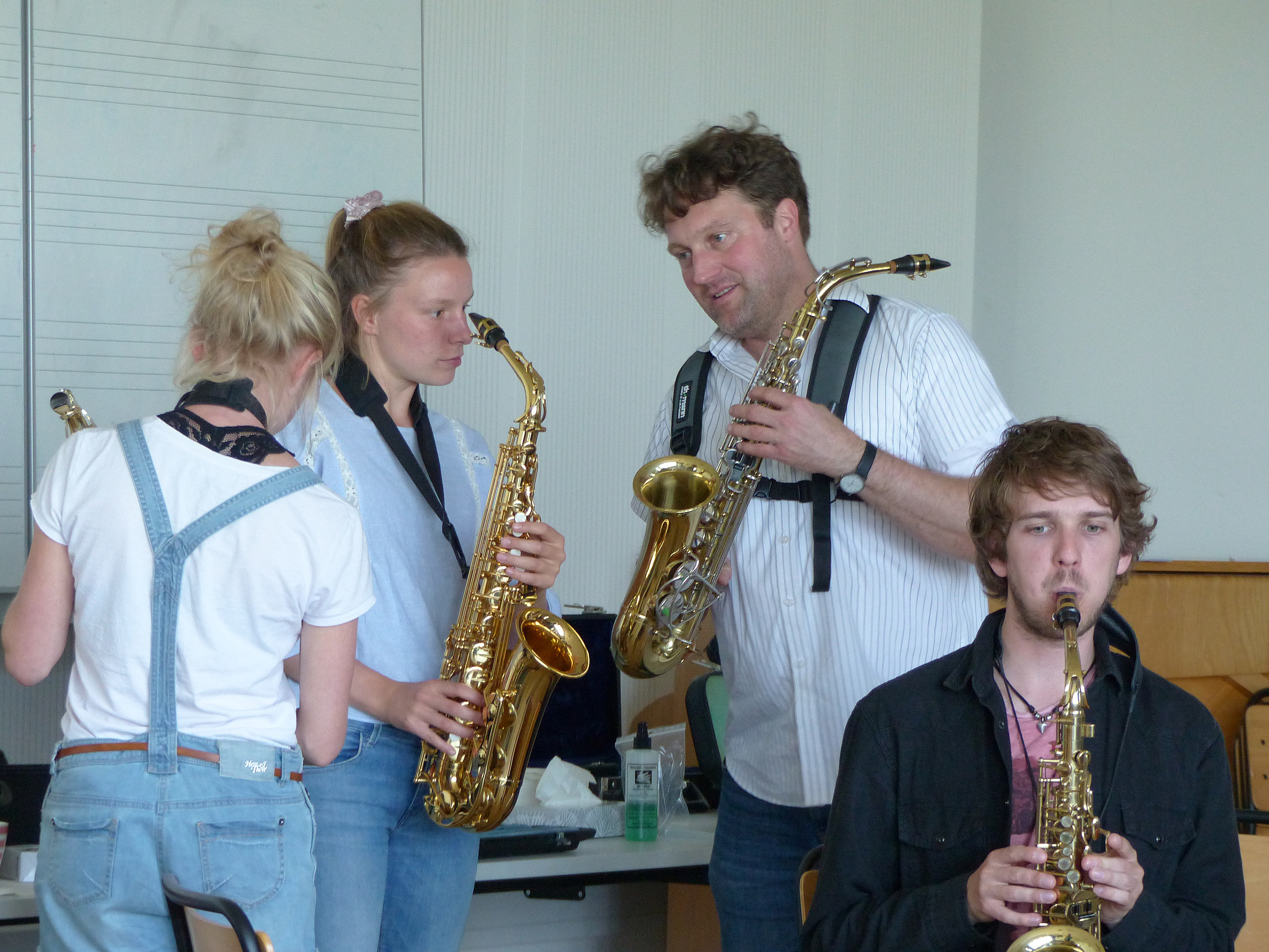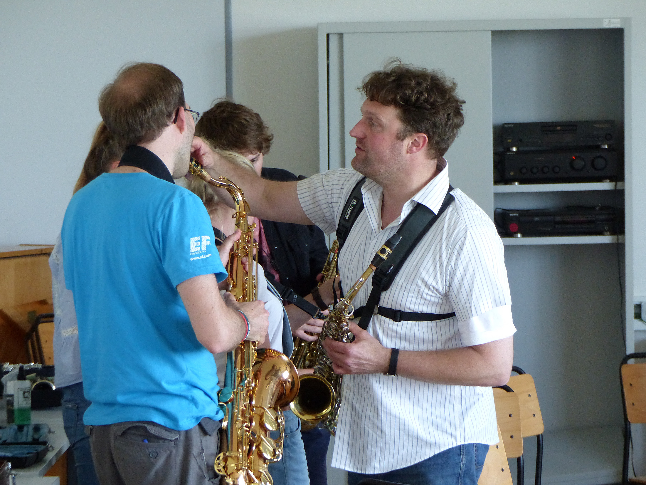 Der Workshop gab eine Einführung in das Konzept der Bläserklassen und mögliche Organisationsformen im schulischen Kontext. Es wurden typische Instrumente praktisch erprobt und Einblicke in gängiges Unterrichtsmaterial
