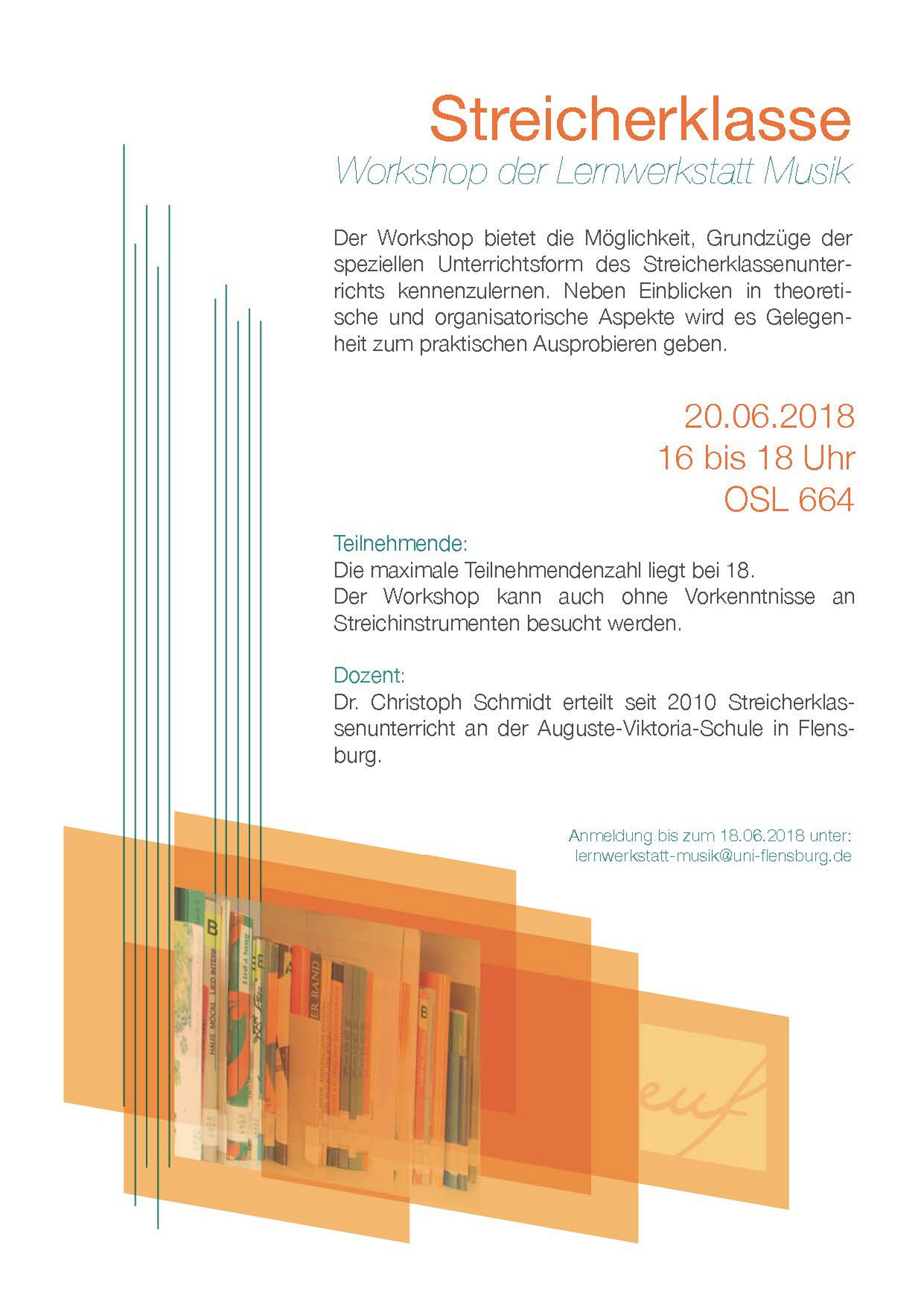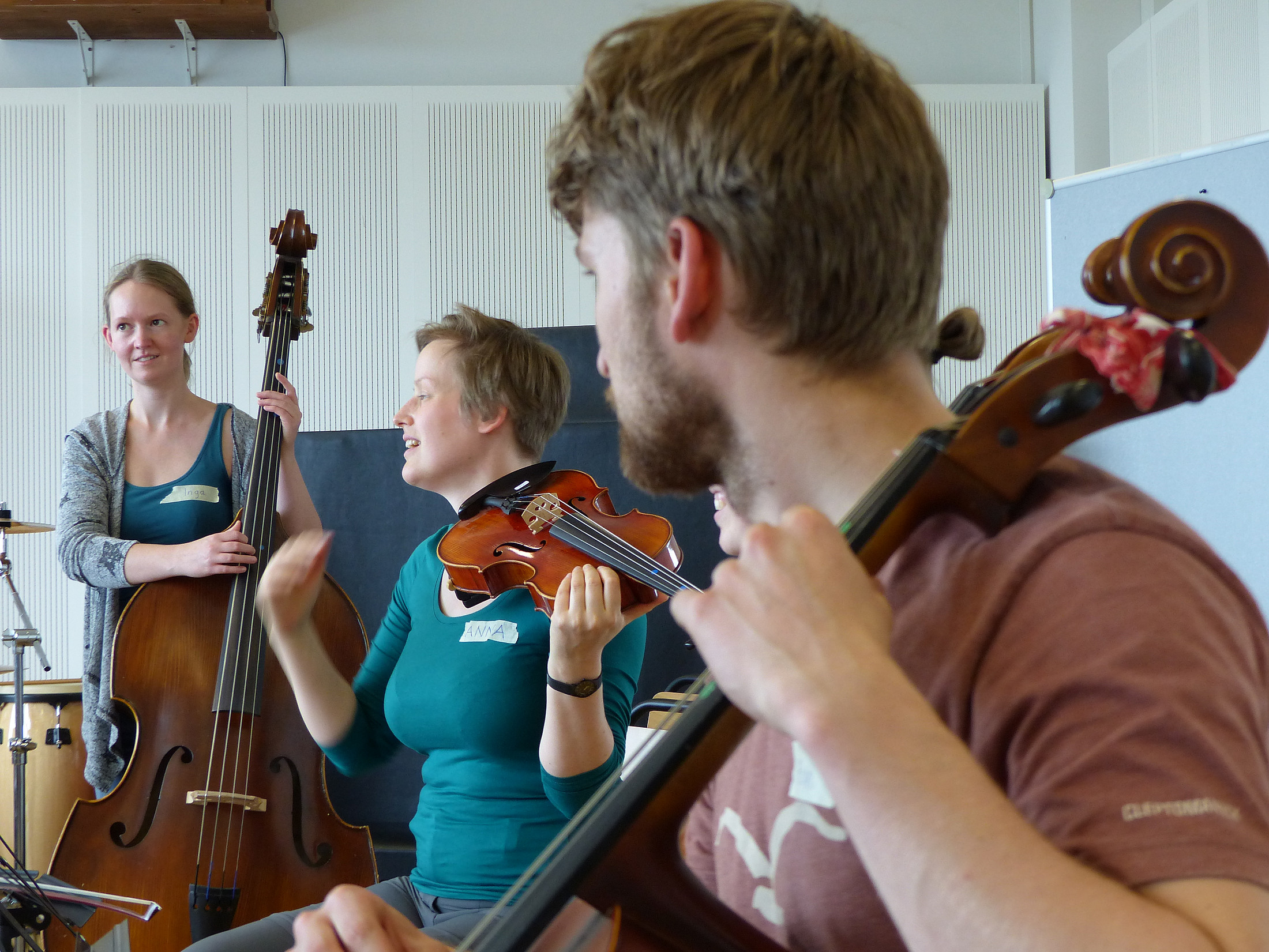 Der Workshop bot die Möglichkeit, Grundzüge der speziellen Unterrichtsform des Streicherklassenunterrichts kennenzulernen. Neben Einblicken in theoretische und organisatorische Aspekte gab es Gelegenheit zum praktischen Ausprobieren.