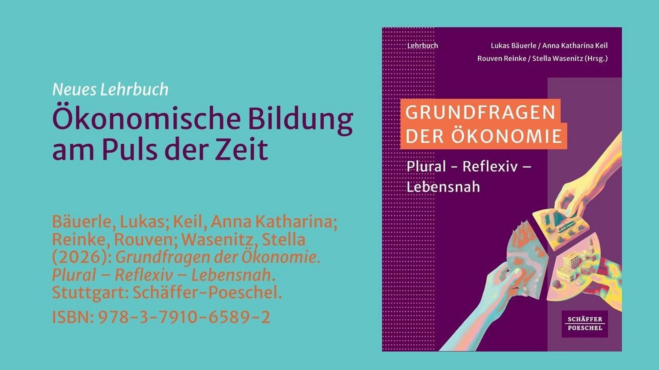 Mit den "Grundfragen der Ökonomie" ist erstmals ein umfassend plural-ökonomisch ausgerichtetes Einführungslehrwerk im Schäffer-Poeschel Verlag erschienen. Herausgegeben wird der Band von Lukas Bäuerle, Anna Katharina Keil, Rouven Reinke und Stella Wasenitz. Das Lehrbuch versammelt rund 30 Autor*innen aus der pluralen Ökonomik und angrenzenden Feldern und bietet einen vielseitigen, reflexiven und lebensnahen Zugang zu zentralen ökonomischen Themen. Es richtet sich an Einführungsveranstaltungen, die außerakademische Bildungsarbeit, die gymnasiale Oberstufe und eine breitere wirtschaftsinteressierte Öffentlichkeit.