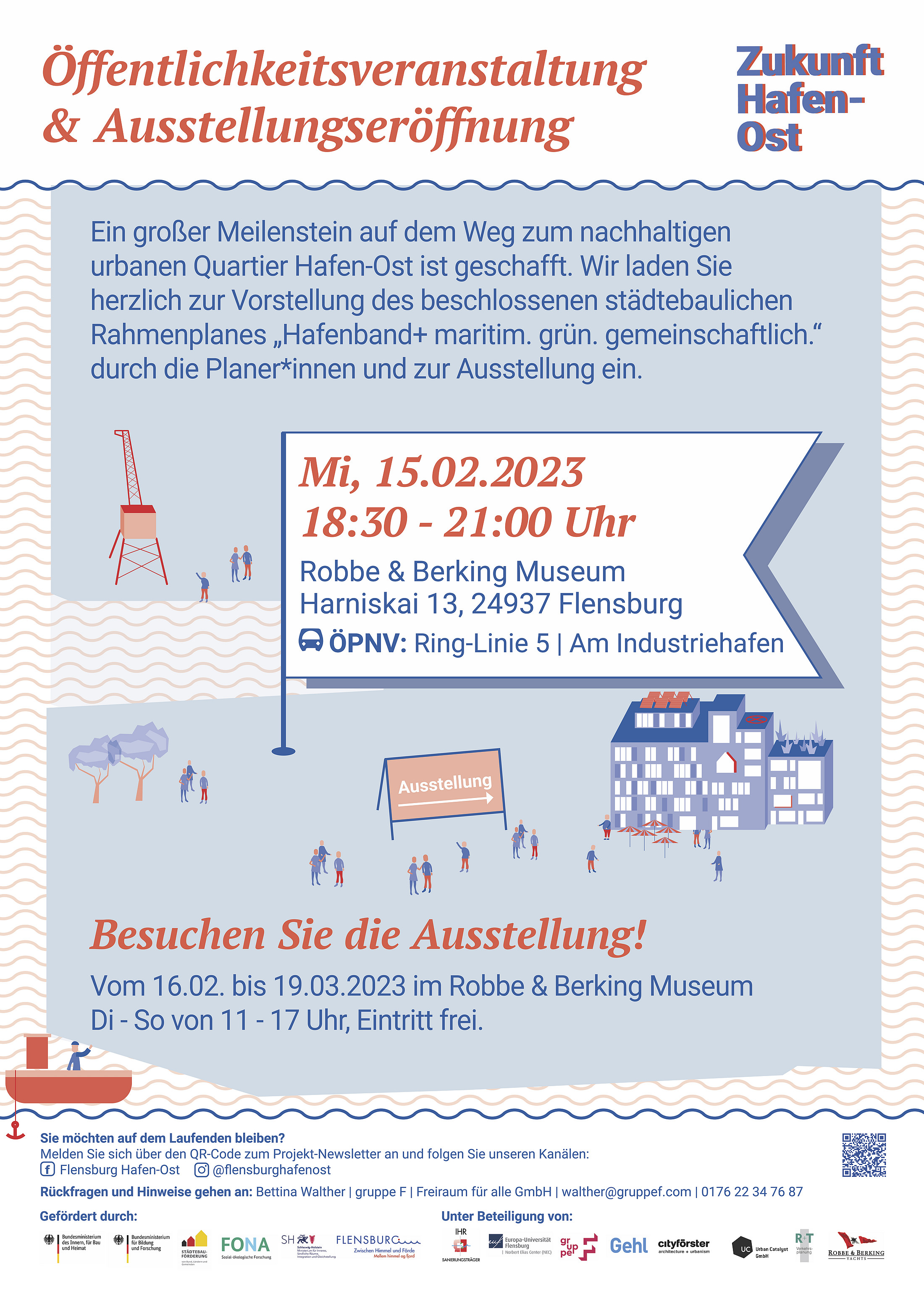 Der Rahmenplan, der unter Begleitung der einer transdisziplinären Arbeitsgruppe aus Mitarbeiter*innen der städtischen Verwaltung und des Norbert Elias Centers entstanden ist, wurde am 15. Februar 2023 um 18:30 im Robbe & Berking Museum (Harniskai 13) in einer Ausstellung vorgestellt. Die Ausstellung kann vom 16.02. bis 30.04.2023 kostenfrei besucht werden.