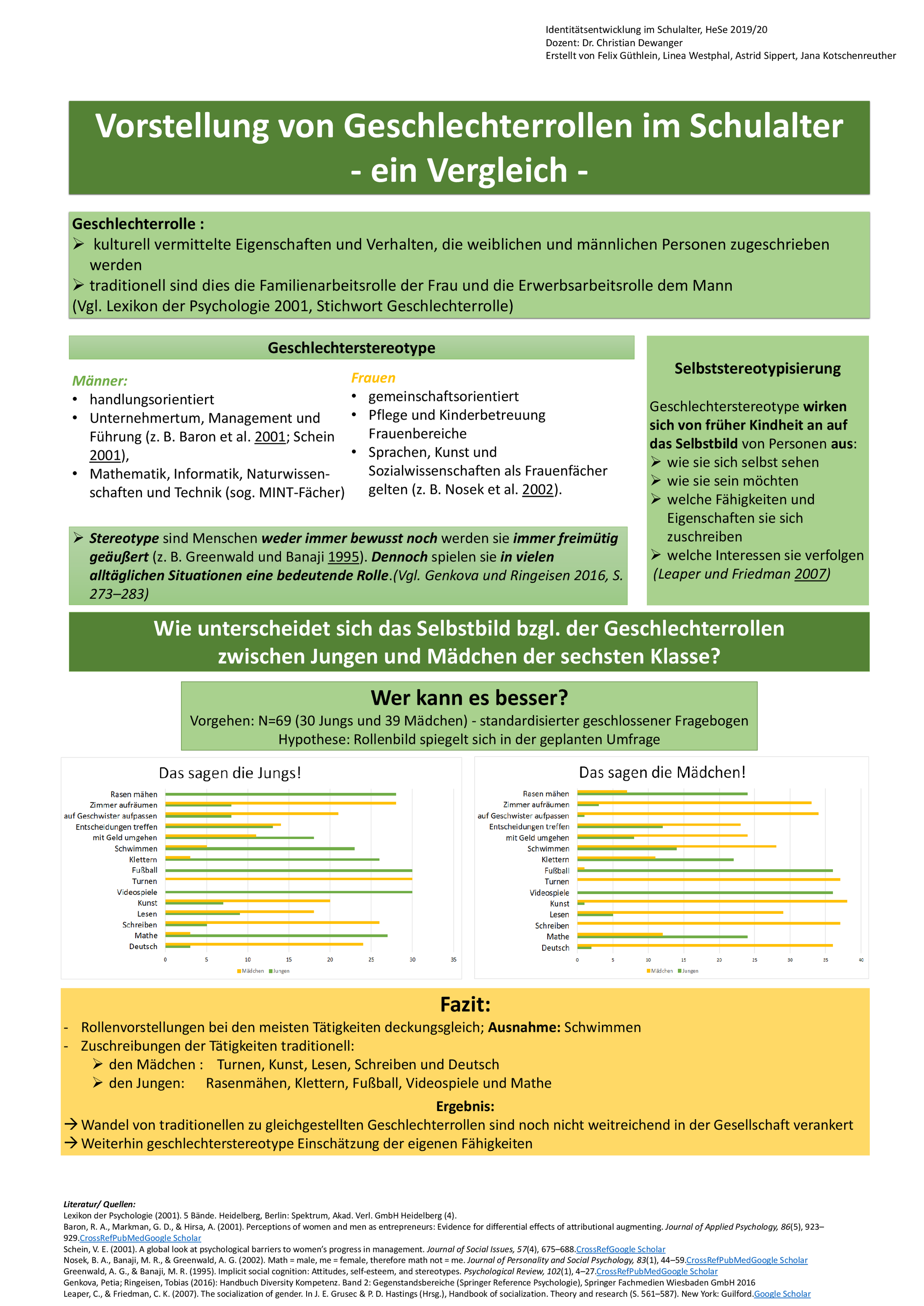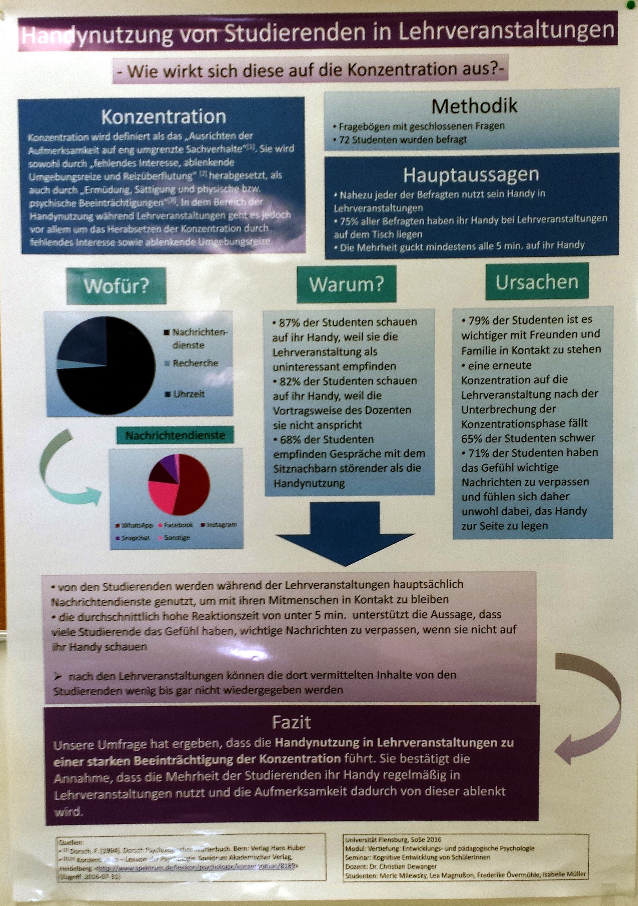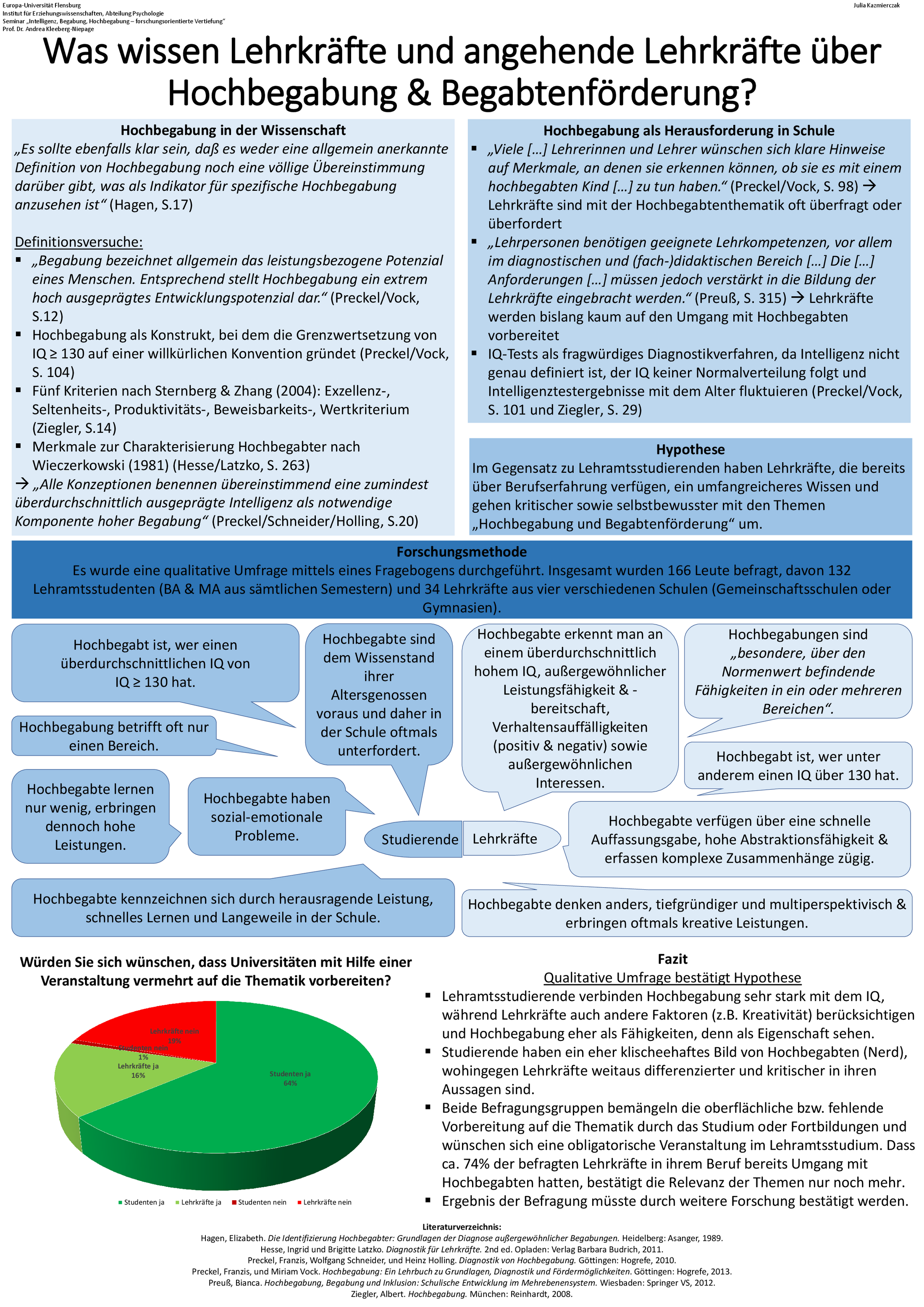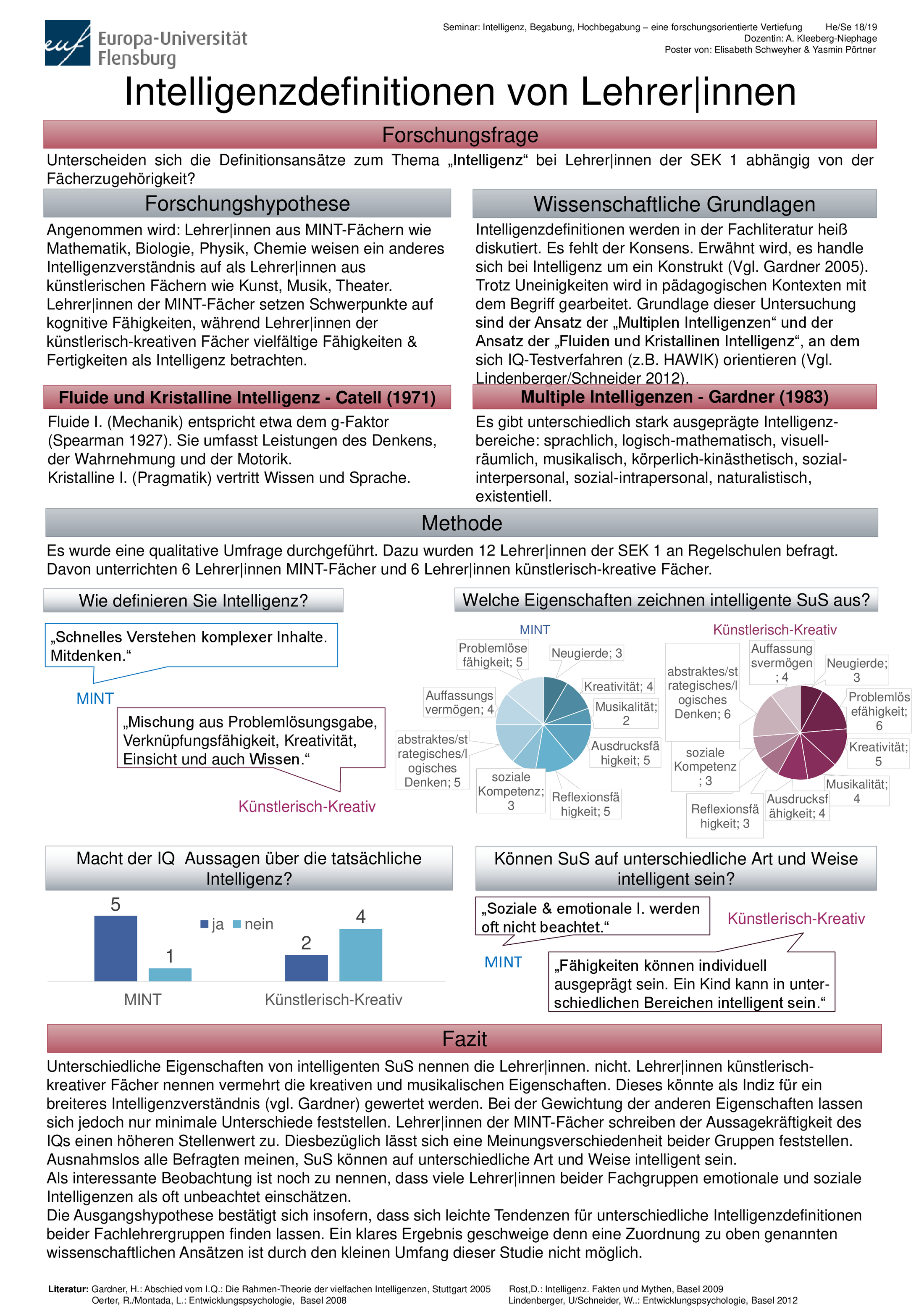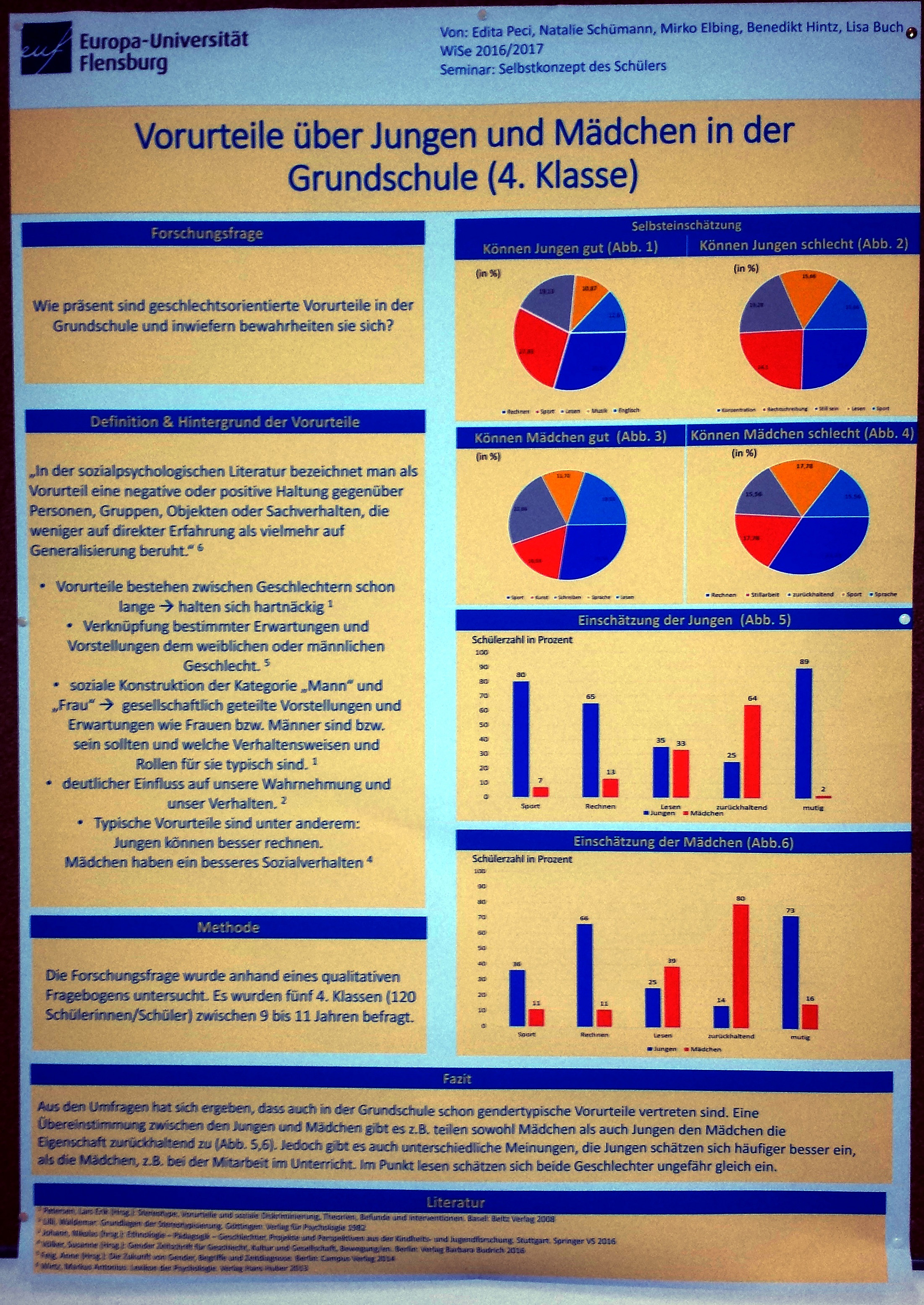 Das Thema "Kommunikation und Belastungserleben im Lehrerberuf" wurde im MA Gemeinschaftsschule bearbeitet, das Thema "Geschlechtsdifferenzen im mathematischen Selbstkonzept" im BA Bildungswissenschaften.