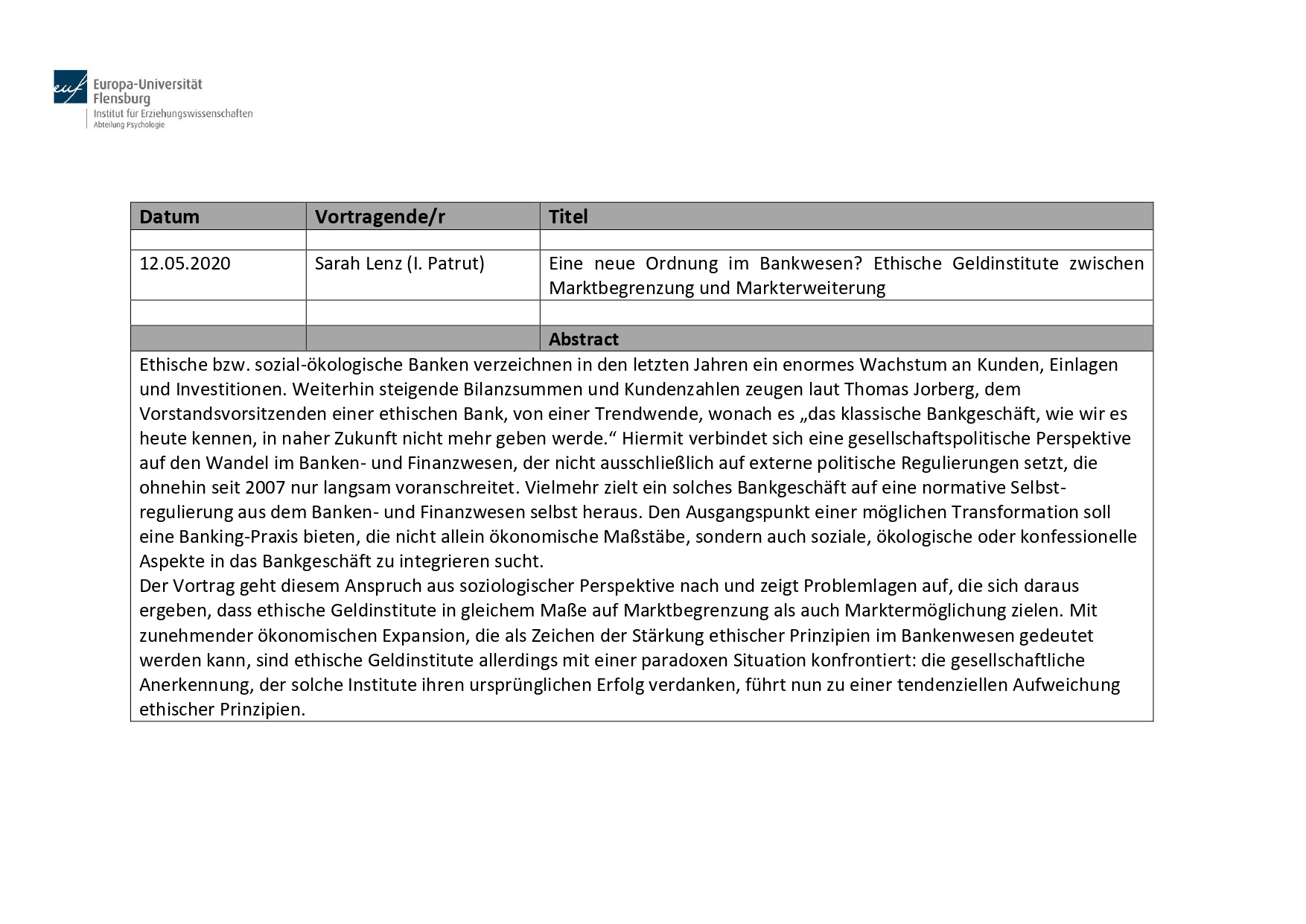 DatumVortragende/rTitel
