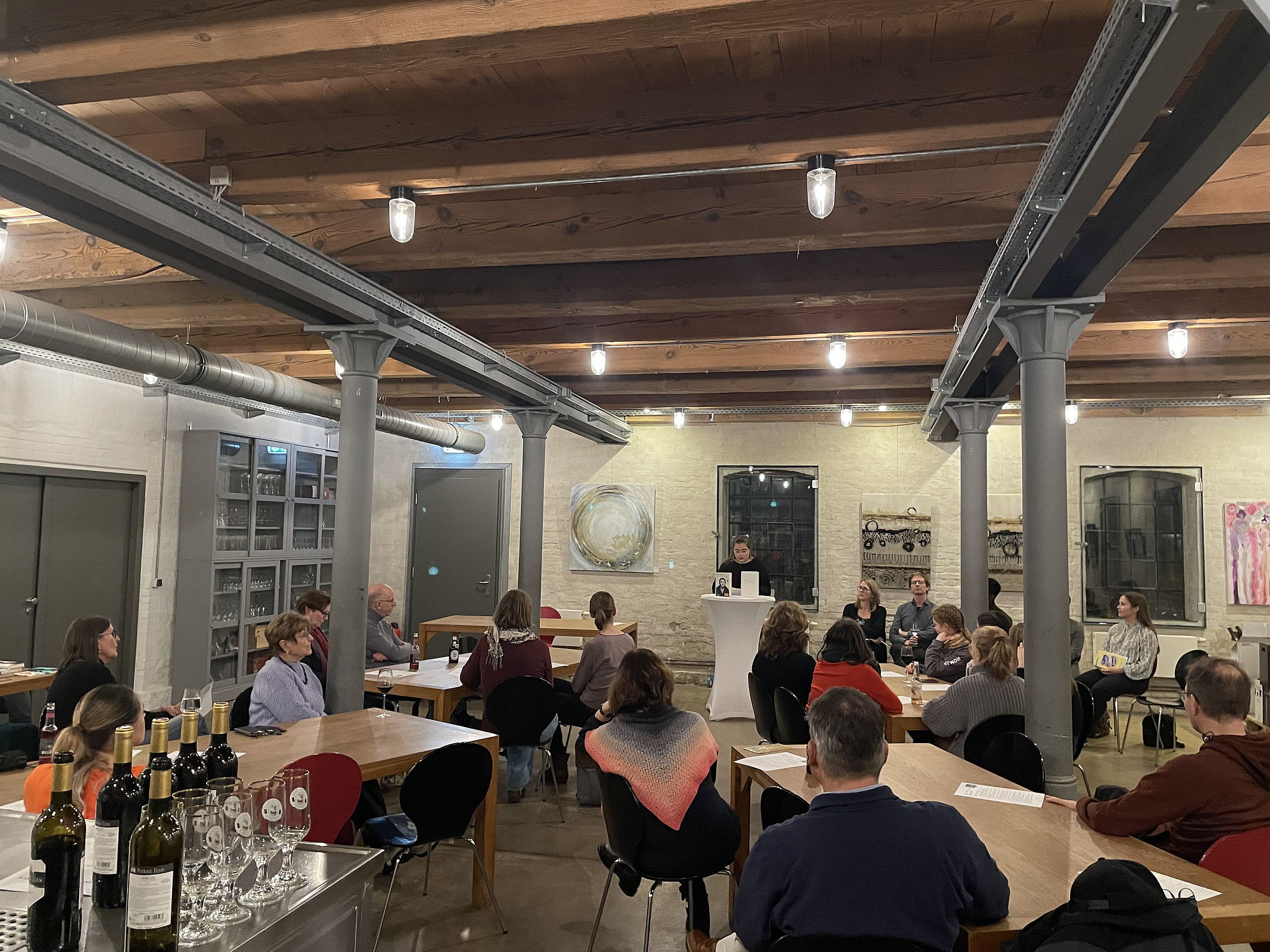 Une soirée littéraire agréable durant laquelle les présentations de livres ont été suivies d'un échange convivial autour d’un verre de vin, sans oublier le tour de la table de livres mise à disposition par la librairie Carl-von-Ossietzky. Un grand merci à tou.te.s les participant.e.s et à nos partenaires de coopération grâce auxquels la soirée a pu être remplie de vie (et de vin).