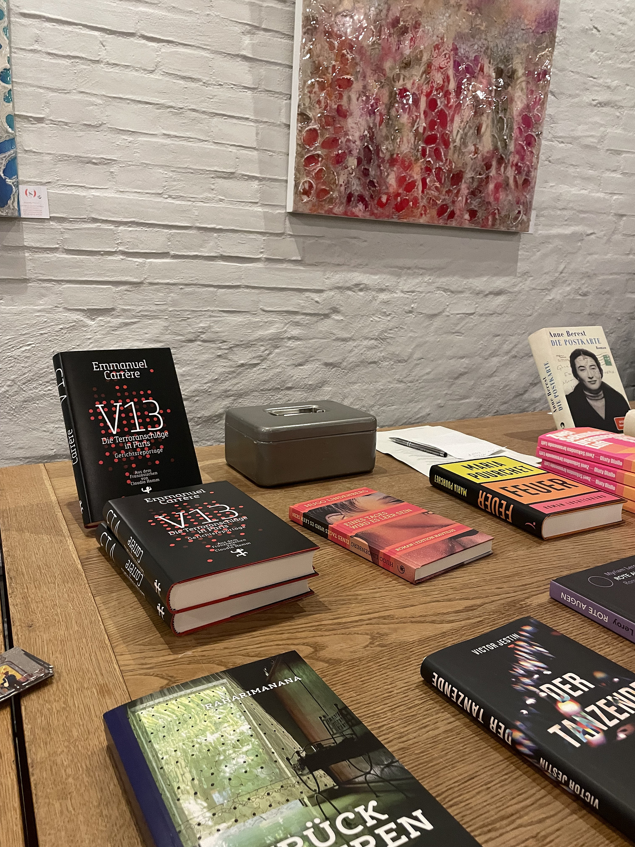 Des enseignant.e.s et étudiantes de l’Université de Flensbourg Europa-Universität Flensburg ont présenté de nouveaux romans du marché du livre français en coopération avec le Campus Nord für Frankreich und Frankophonie (Canoff) et la librairie Carl-von-Ossietzky au Weinkontor Gavin. Un mélange très varié de livres a été choisi et recommandé aux environ trente francophiles présent.e.s  : du Feu de la passion (Anne Pourchet) à la relation entre l'animal et l'homme dans Le dernier des siens (Sibylle Grimbert), en passant par le Revenir à Madagascar (Jean-Luc Raharimanana). Il y avait surtout de nouvelles publications de ces deux dernières années, dont la traduction allemande est déjà disponible.