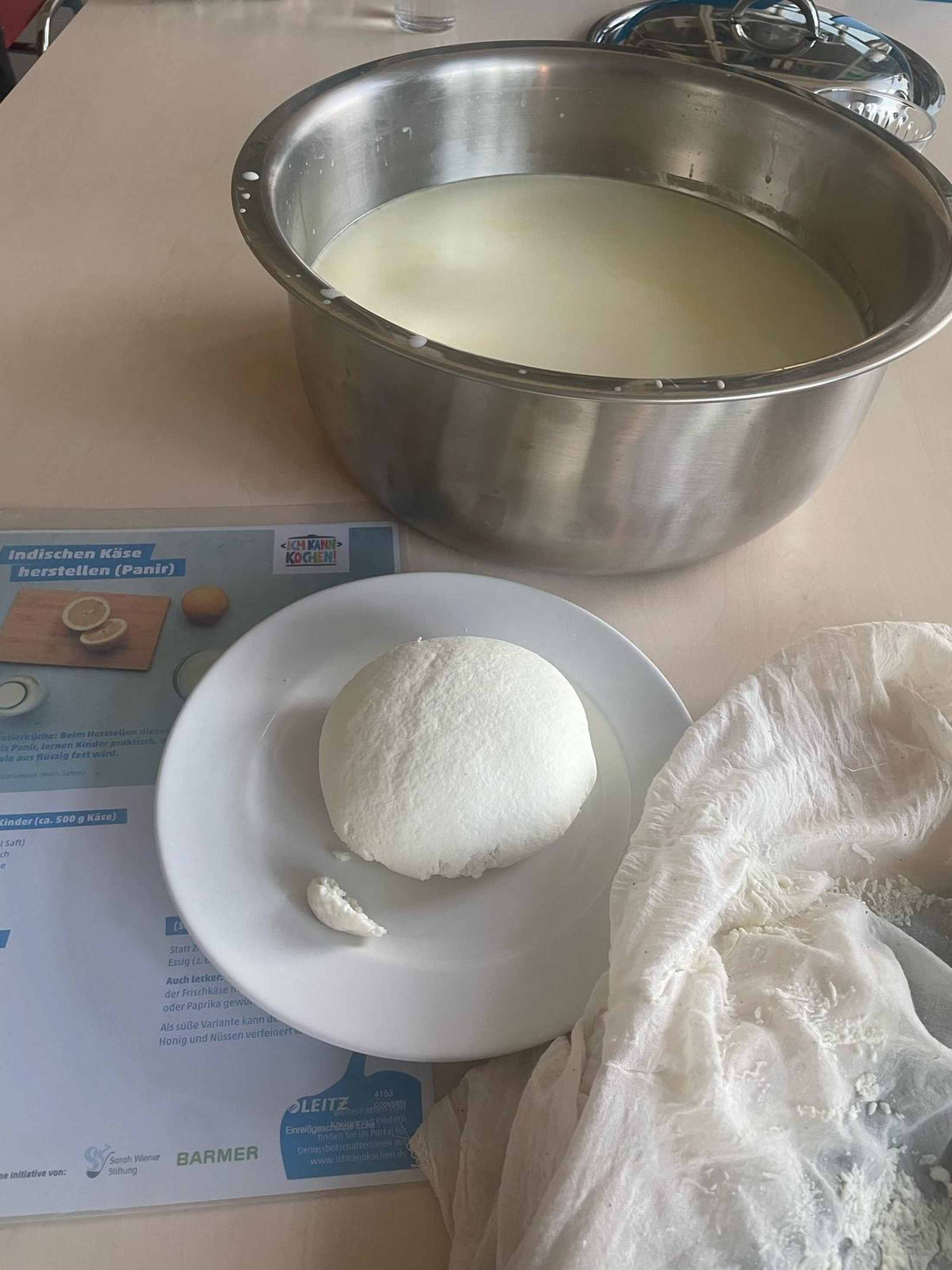 Wir stellen eigenen Käse her, der mit Kräutern und Gewürzen verfeinert sofort verzehrt werden kann. Zudem schütteln wir Butter und stellen auch Milchshakes und Kefir her. In der BZfE-Pyramide sind Milch- und Milchprodukte aufgeführt und es gibt dazu Erläuterungen für den Ernährungsalltag. Zudem werden einige relevante Hinweise zum Thema Käse vermittelt. Ein gemeinsames Abendbrot rundet den Kochworkshop ab. Die Rezepte werden online zur Verfügung gestellt. Bitte Dosen für Speisereste mitbringen!