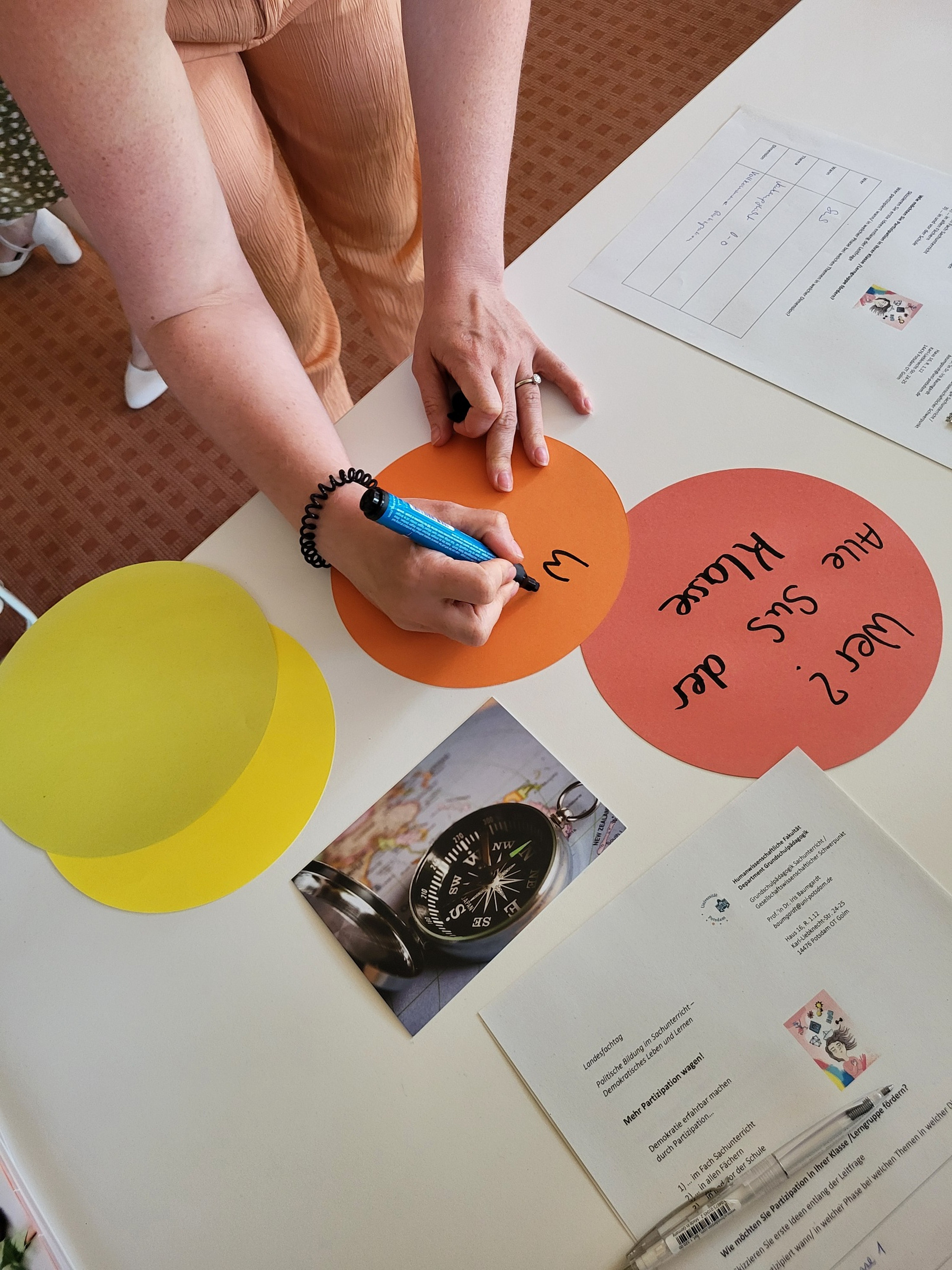 Die anschließenden Workshops konkretisierten vielfältige Umsetzungsmöglichkeiten im Sachunterricht. Neben den interessierten Lehrkräften und Lehrkräften im Vorbereitungsdienst hatten auch Studierende aus dem Seminar "Gesellschaftswissenschaftlicher Sachunterricht in Theorie und Praxis" (Institut Sachunterricht, EUF) die tolle Möglichkeit an dem Landesfachtag teilzunehmen. Es gab beispielsweise Workshops zu den Themen: “Demokratiebildung im Grundschulalter”, “Manipulative Designs – Wie beeinflussen Dark Patterns, Cookies und Tracking bereits Grundschulkinder?“, ”Ki und Demokratiebildung – Chancen schon für die Grundschule?".