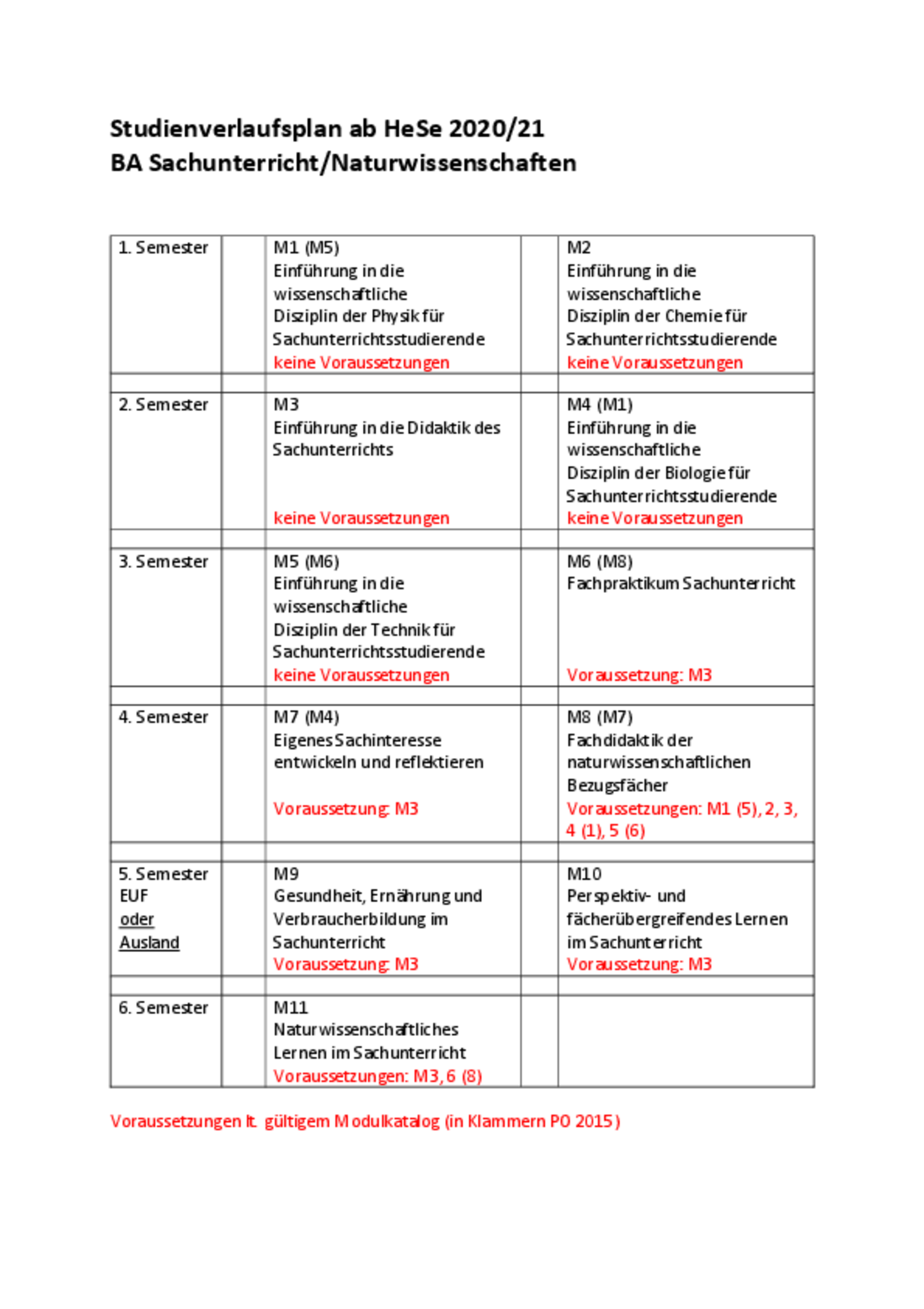 Studienverlauf BA Sachunterricht - naturwissenschaftliche Ausrichtung