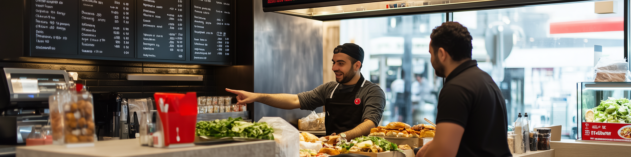 Sobald Sie im Dönerladen angekommen sind, schauen Sie sich die Speisekarte an und wählen Sie Ihren Lieblingsdöner. Entscheiden Sie sich für die Art des Brotes, das Fleisch (Hähnchen, Kalb oder gemischt) und das Gemüse, das Sie möchten. Vergessen Sie nicht, die Saucen auszuwählen, die Ihren Döner perfekt machen. Geben Sie Ihre Bestellung freundlich auf und beobachten Sie, wie der Mitarbeiter den Döner frisch zubereitet.